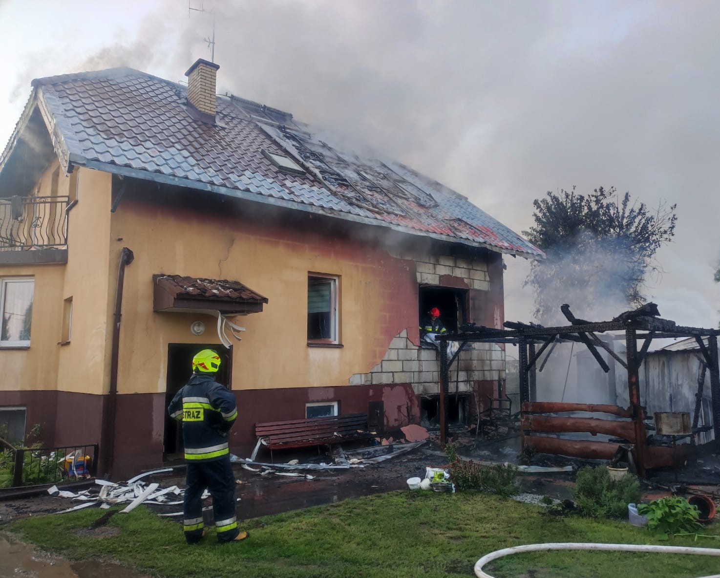 W nocy z soboty na niedzielę 5 czerwca doszło do pożaru drewnianej przydomowej altanki. Pożar rozprzestrzenił się na piętrowy budynek jednorodzinny oraz garaż.