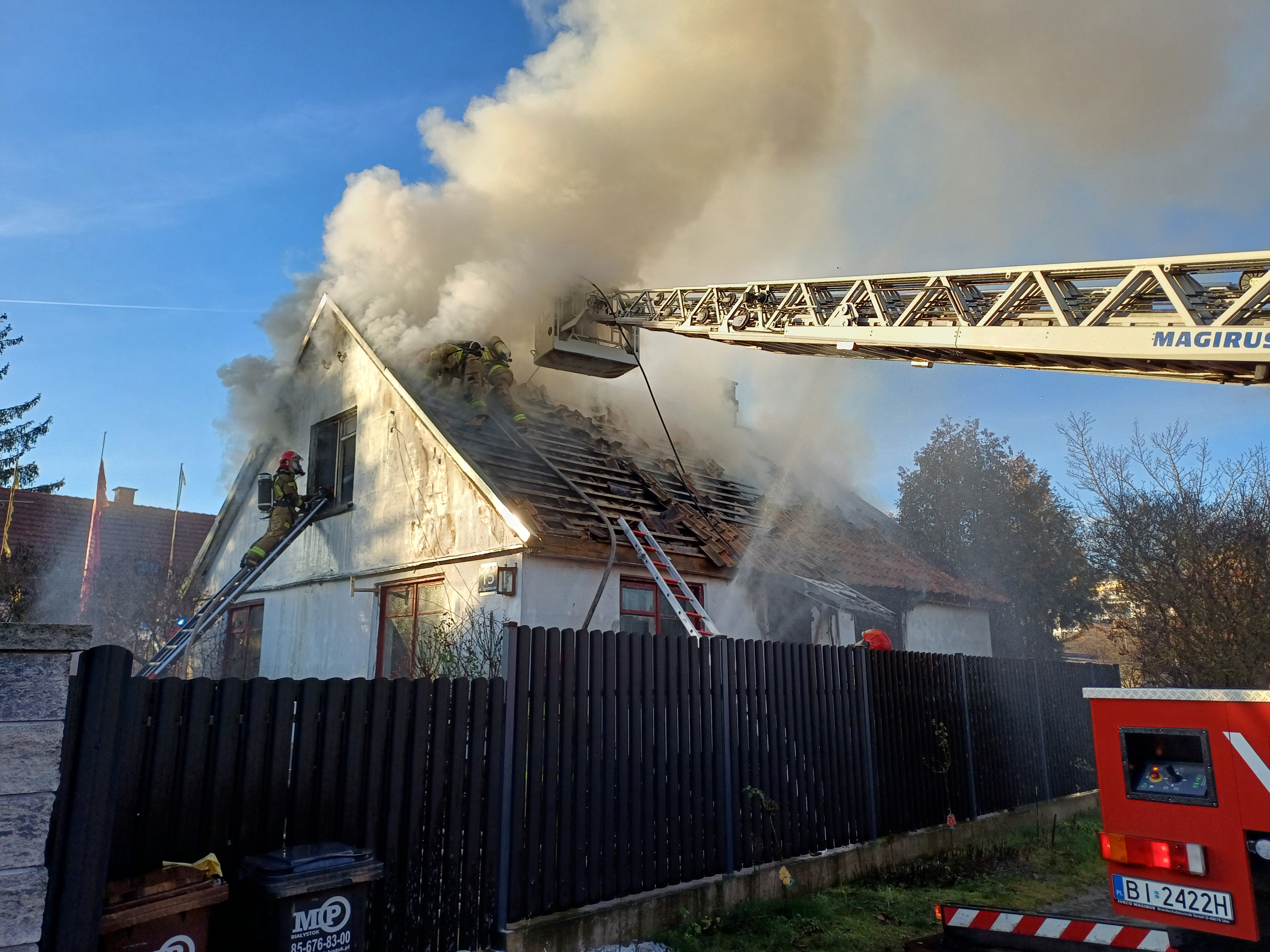 W dniu 17 grudnia 2025 roku, po godzinie 12:30 Stanowisko Kierowania Komendanta Miejskiego PSP w Białymstoku otrzymało zgłoszenie o pożarze dwukondygnacyjnego drewnianego domu jednorodzinnego przy ul. Ogrodniczki w Białymstoku.