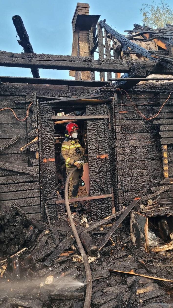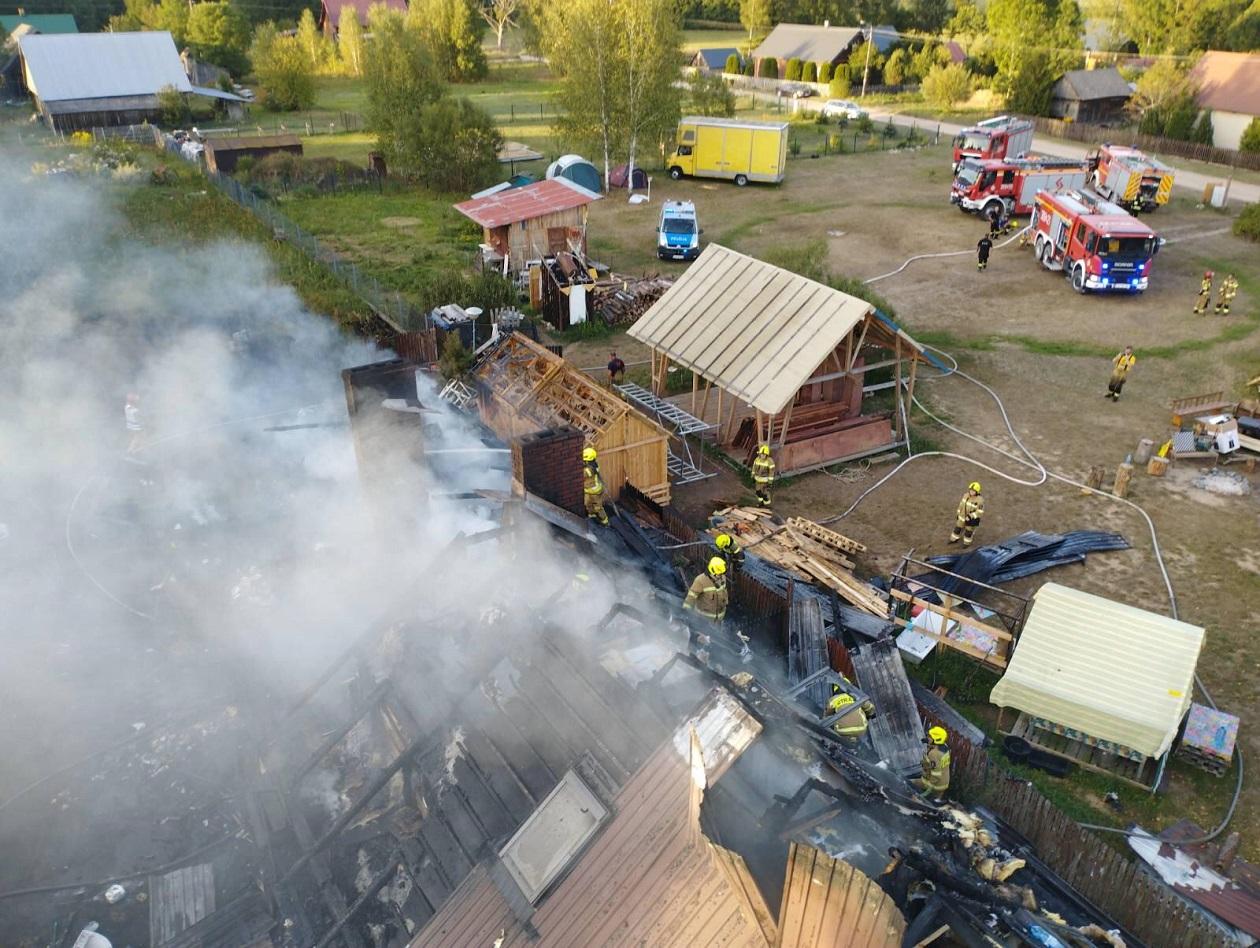 Na miejscu zdarzenia pierwsze jednostki straży pożarnej zastały rozwinięty pożar budynku drewnianego mieszkalnego z pomieszczeniem gospodarczym oraz garażu. Ogniem objęta byłą cała część gospodarcza oraz był widoczny czarny gęsty dym wydobywający się z części mieszkalnej. Kierujący Działaniem Ratowniczym otrzymał informację od sąsiadów, że w momencie powstania pożaru w budynku nie znajdowały się żadne osoby.