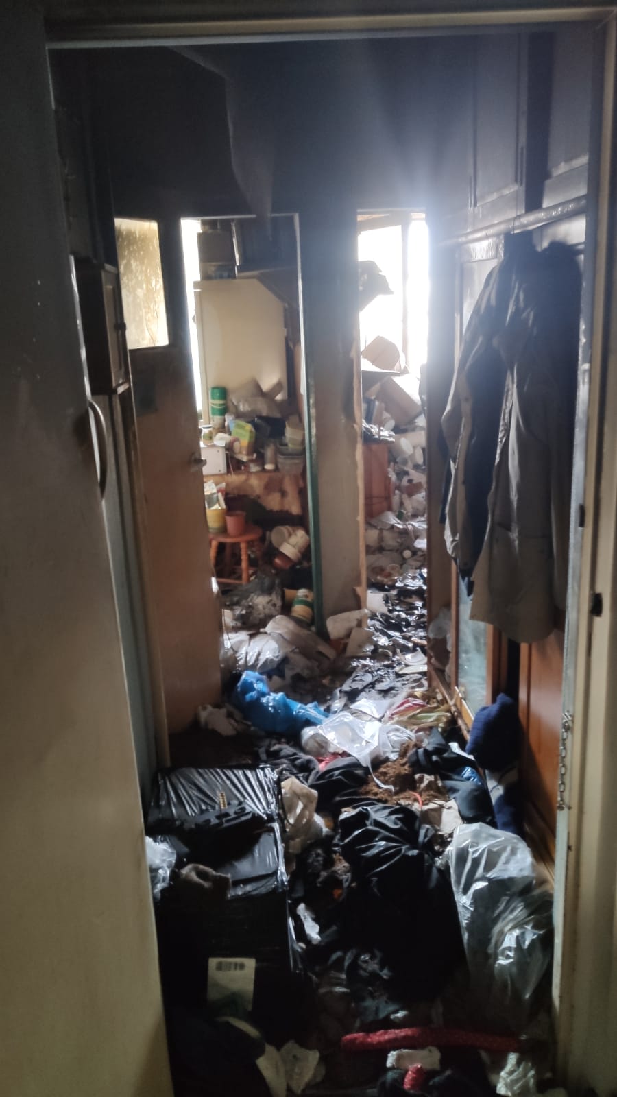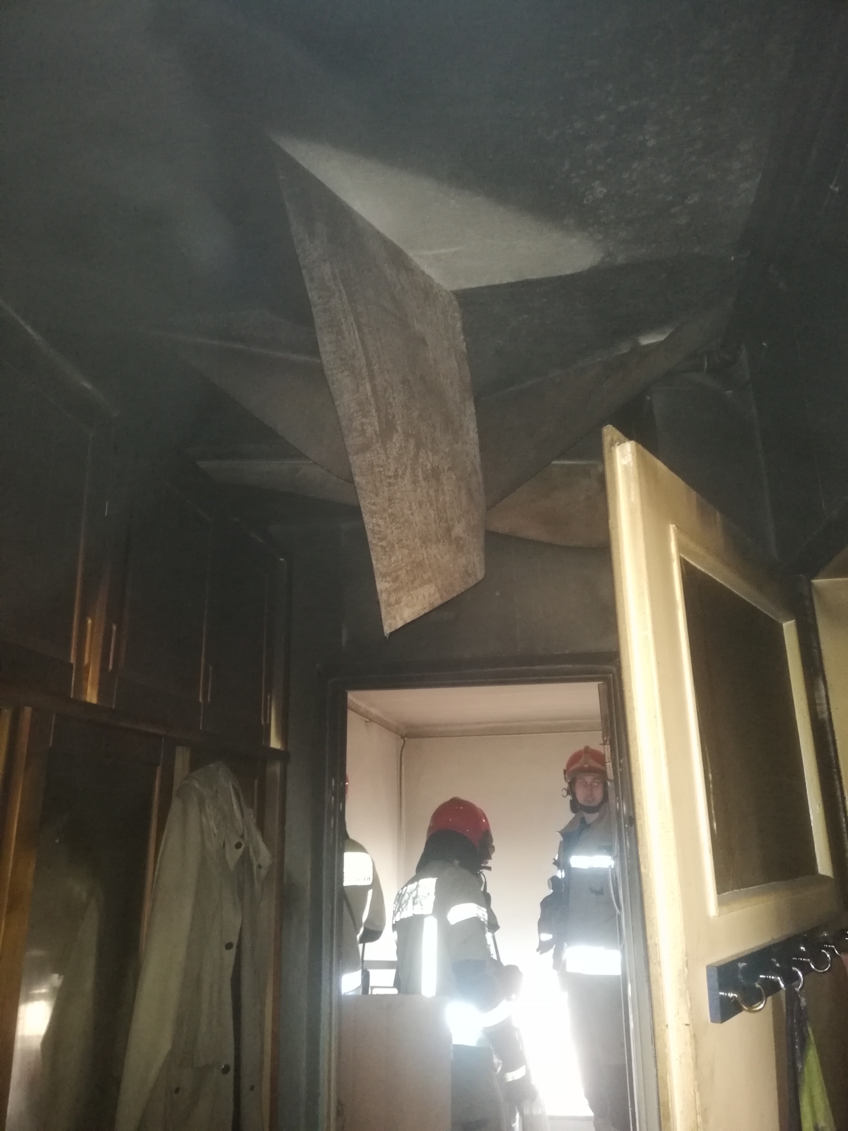 Po przybyciu na miejsce pierwszych zastępów Straży Pożarnej zastano silne zadymienie oraz pożar pokoju i przedpokoju w mieszkaniu na IV piętrze. Działania strażaków poległy na zabezpieczeniu miejsca zdarzenia oraz podaniu prądu wody w natarciu na zarzewie ognia. W trakcie działań strażacy odnaleźli poszkodowanego nieprzytomnego mężczyznę z poparzeniami, który leżał na podłodze w pokoju objętym pożarem. Odnaleziono także psa lokatora. Mężczyzna został ewakuowany i przekazany dla Pogotowia Ratunkowego. Przytomnego psa strażacy wynieśli na dwór, gdzie podano mu tlen, okryto. Po chwili został zabrany przez pracowników schroniska. Jednocześnie z działaniami gaśniczymi prowadzono ewakuację mieszkańców klatki, w której miał miejsce pożar. Po ugaszeniu pożaru, pogorzelisko sprawdzono kamerą termowizyjną – nie stwierdzono zarzewi ognia.