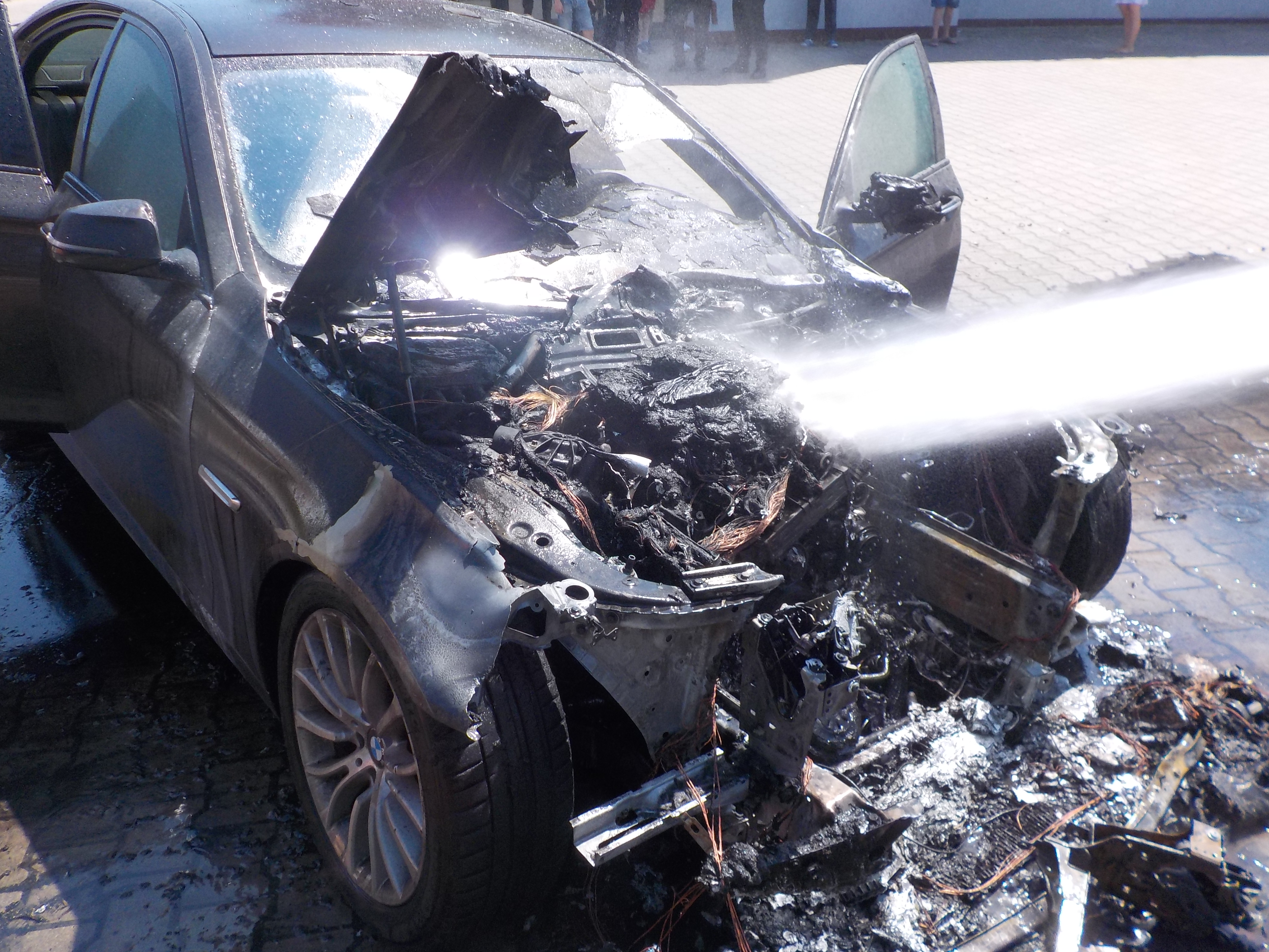 Po dojeździe na miejsce zdarzenia KDR stwierdził, że na parkingu przy sklepie budowlanym pali się samochód osobowy marki BMW. Kierujący pojazdem opuścił pojazd przed przybyciem JOP i nie wymagał udzielenia pomocy medycznej.