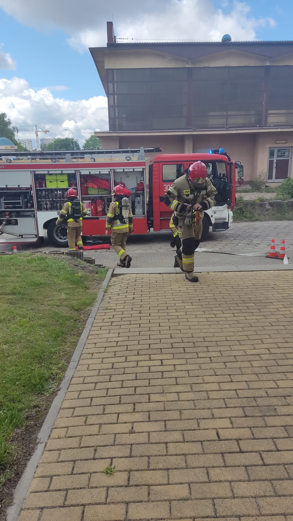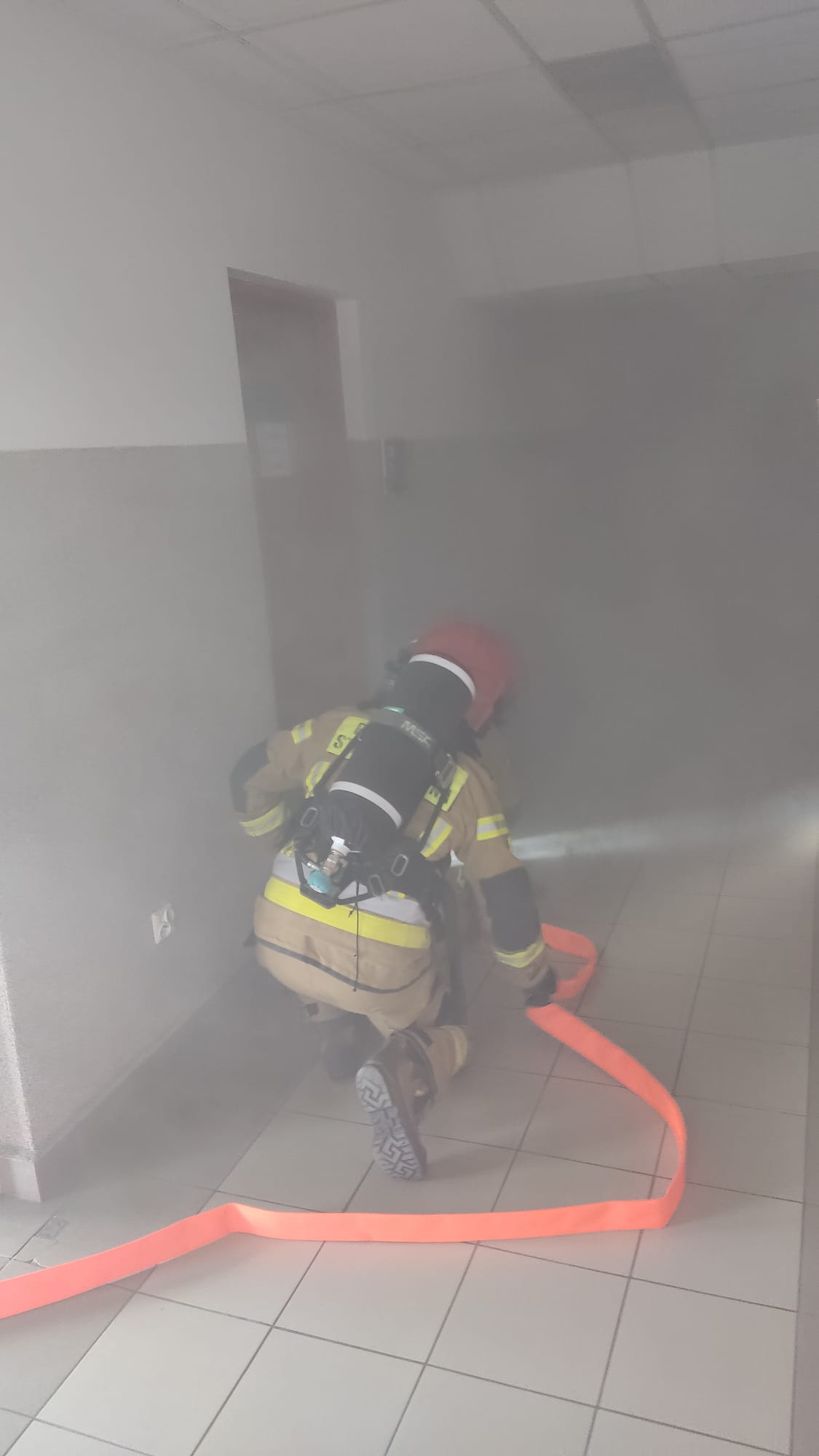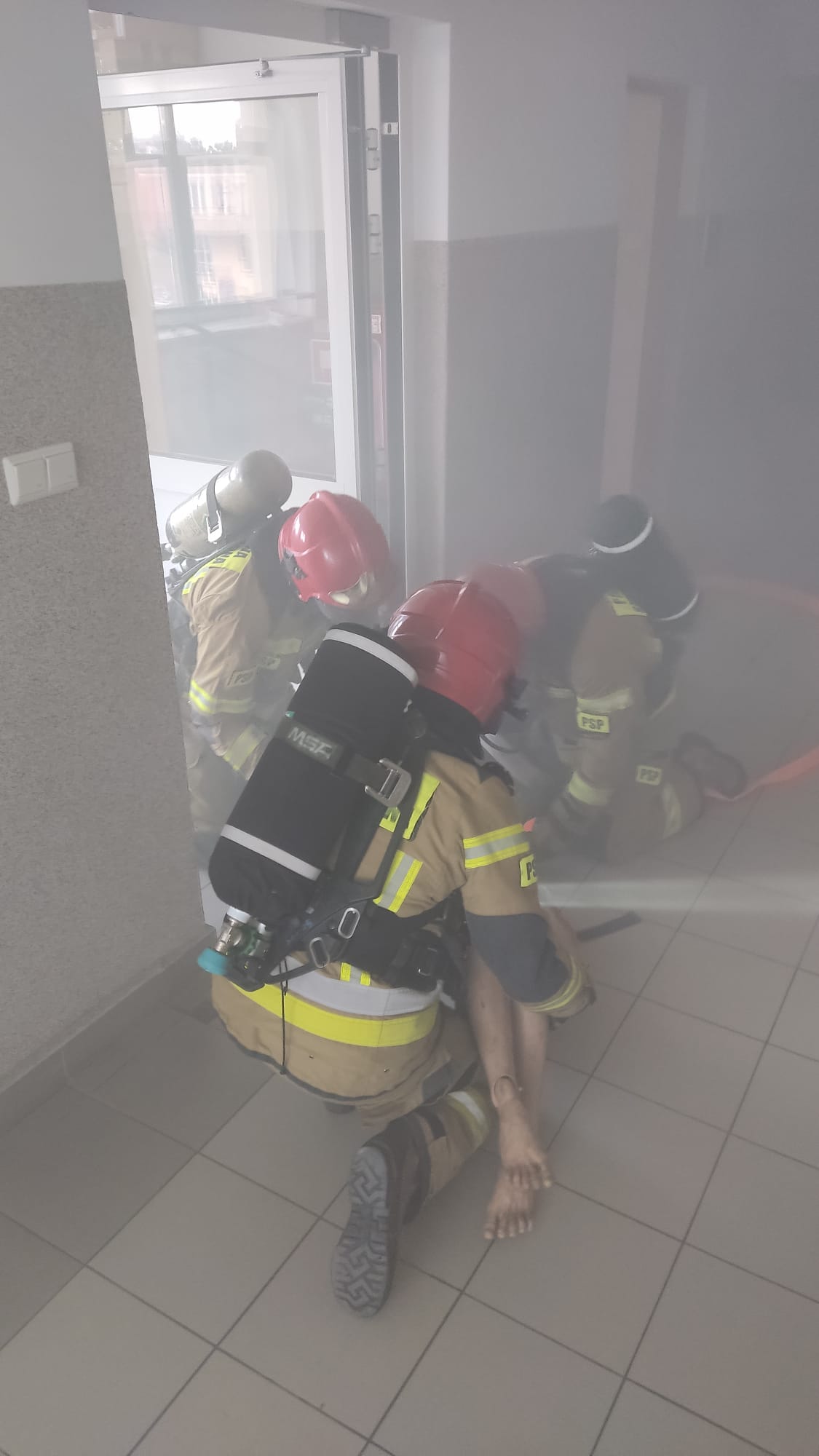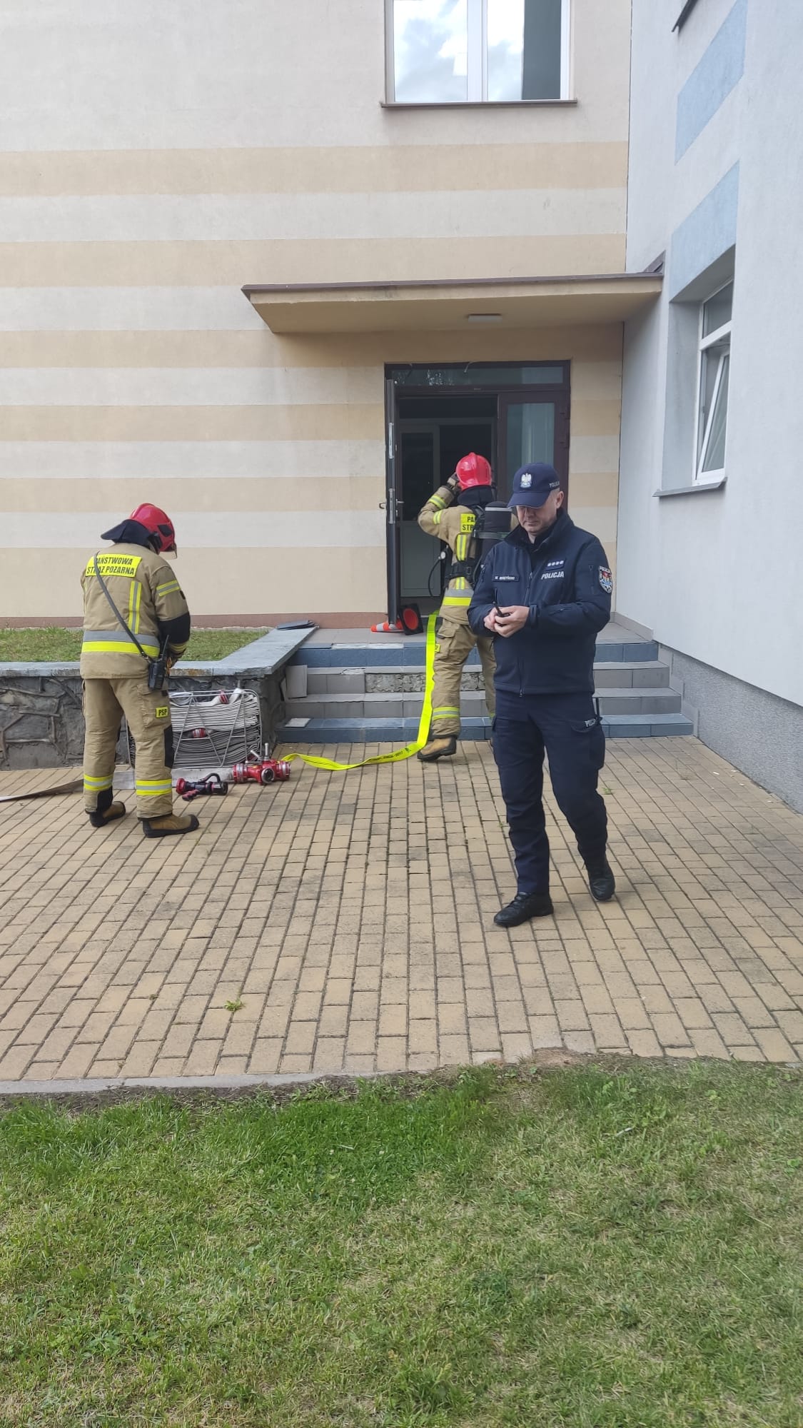 Taką sytuację zastali strażacy z JRG nr 1 w Białymstoku podczas ćwiczeń, przeprowadzonych wspólnie z Komendą Miejską Policji. Strażacy szybko dokonali likwidacji zagrożenia. Sprawnie odnaleziono i ewakuowano w miejsce bezpieczne pierwszą poszkodowaną osobę. Ze względu na silne zadymienie panujące na drogach ewakuacyjnych konieczne było użycie drabiny mechanicznej w celu ewakuacji drugiego poszkodowanego.