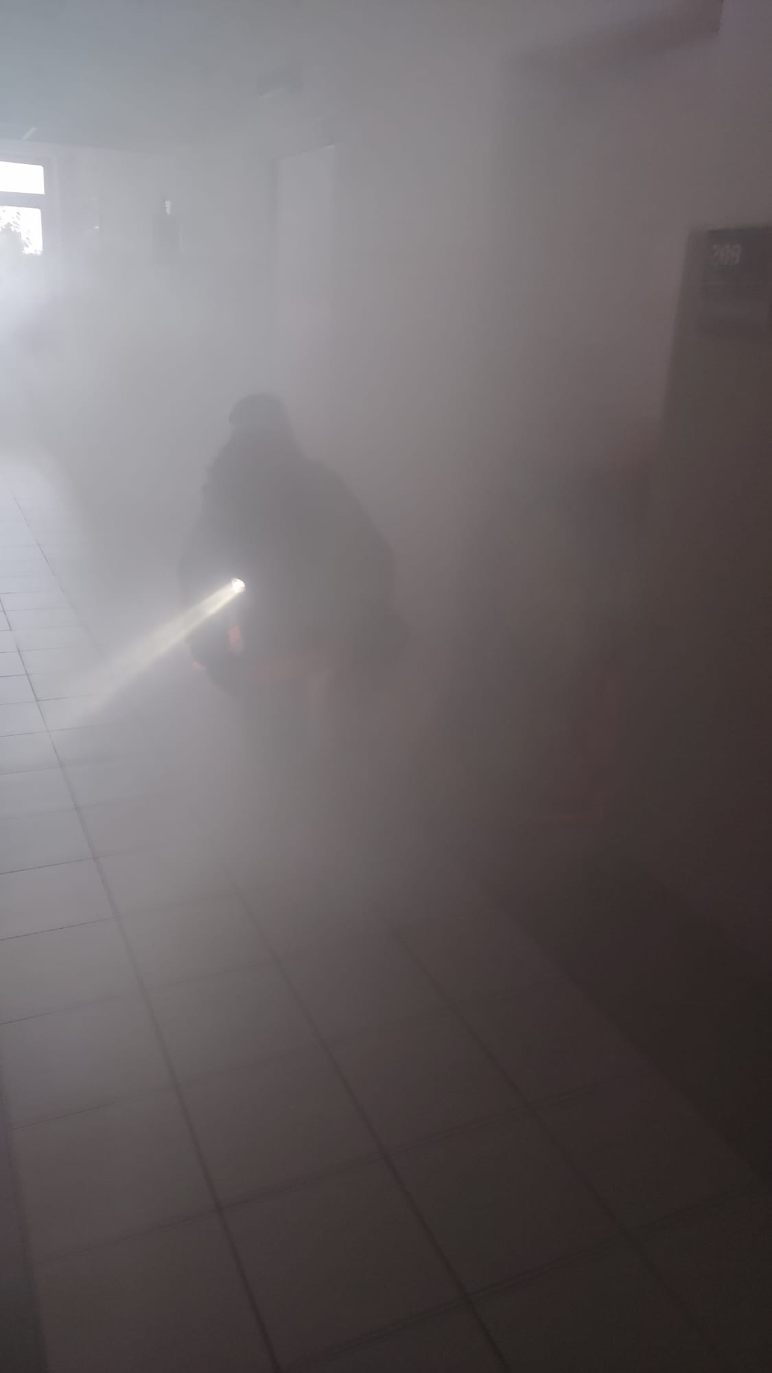 Po nieudanej próbie ugaszenia przez pracowników, została zarządzona ewakuacja budynku. Stwierdzono brak dwóch pracowników, którzy prawdopodobnie podjęli próbę gaszenia pożaru. Powstałe w procesie spalania silne zadymienie szybko rozprzestrzeniło się na całą kondygnację, swoim zakresem obejmując drogi ewakuacyjne.