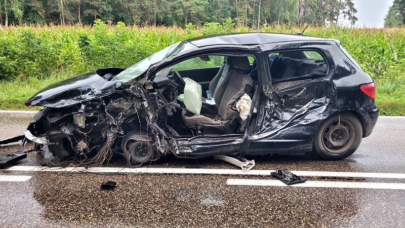 Drugi wypadek zdarzył się ok. godz. 15:00 w miejscowości Gąsówka Stara, na drodze wojewódzkiej nr 681. W zdarzeniu uczestniczyły trzy pojazdy: samochód osobowy oraz dwie ciężarówki. W wyniku zdarzenia ucierpiał kierowca samochodu osobowego, który w chwili przyjazdu służb ratunkowych uwięziony był w uszkodzonym pojeździe. Wydobycie go z pojazdu, wymagało użycia przez strażaków sprzętu hydraulicznego. Przytomny mężczyzna został przekazany obecnemu na miejscu Zespołowi Ratownictwa Medycznego. W działaniach trwających ponad godzinę wzięło udział łącznie 17 strażaków.