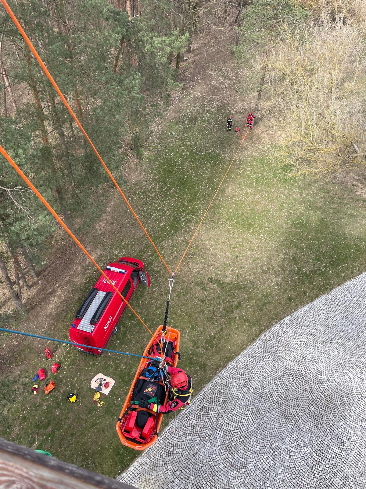 Zgodnie ze scenariuszem ćwiczeń, na wieży widokowej w Uhowie zasłabł jeden ze zwiedzających. Aby mógł on bezpiecznie zejść na dół niezbędna jest interwencja SGRW. Podczas takiego założenia strażacy przećwiczyli: zabezpieczenie terenu działania, dotarcie do poszkodowanego, zbudowanie odpowiednich stanowisk do ewakuacji poszkodowanego, udzielenie mu kwalifikowanej pierwszej pomocy i jego ewakuacja, transport poszkodowanego wybraną metodą na poziom gruntu, asekuracja ratownika i poszkodowanego.