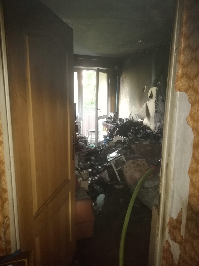 Po dojeździe na miejsce zastępów i wykonaniu rozpoznania, stwierdzono pożar mieszkania na drugim piętrze. Strażacy zabezpieczeni w sprzęt ochrony układu oddechowego oraz linię gaśniczą przystąpili do jego gaszenia. W jego trakcie, rota odnalazła poszkodowaną osobę, która została ewakuowana ze strefy niebezpiecznej na zewnątrz budynku oraz przystąpiono do resuscytacji krążeniowo-oddechowej. Przybyły na miejsce Zespół Ratownictwa Medycznego przejął od strażaków resuscytację. Po długotrwałej reanimacji poszkodowanej, obecny na miejscu lekarz stwierdził jej zgon. Po ugaszeniu pożaru mieszkanie oraz całą klatkę oddymiono, przewietrzono oraz sprawdzono kamerą termowizyjną i miernikami nie stwierdzając zagrożeń. Łącznie ewakuowano 22 osoby. Współpracowano z Policją, Zespołem Ratownictwa Medycznego, pogotowiem energetycznym oraz pogotowiem gazowym.