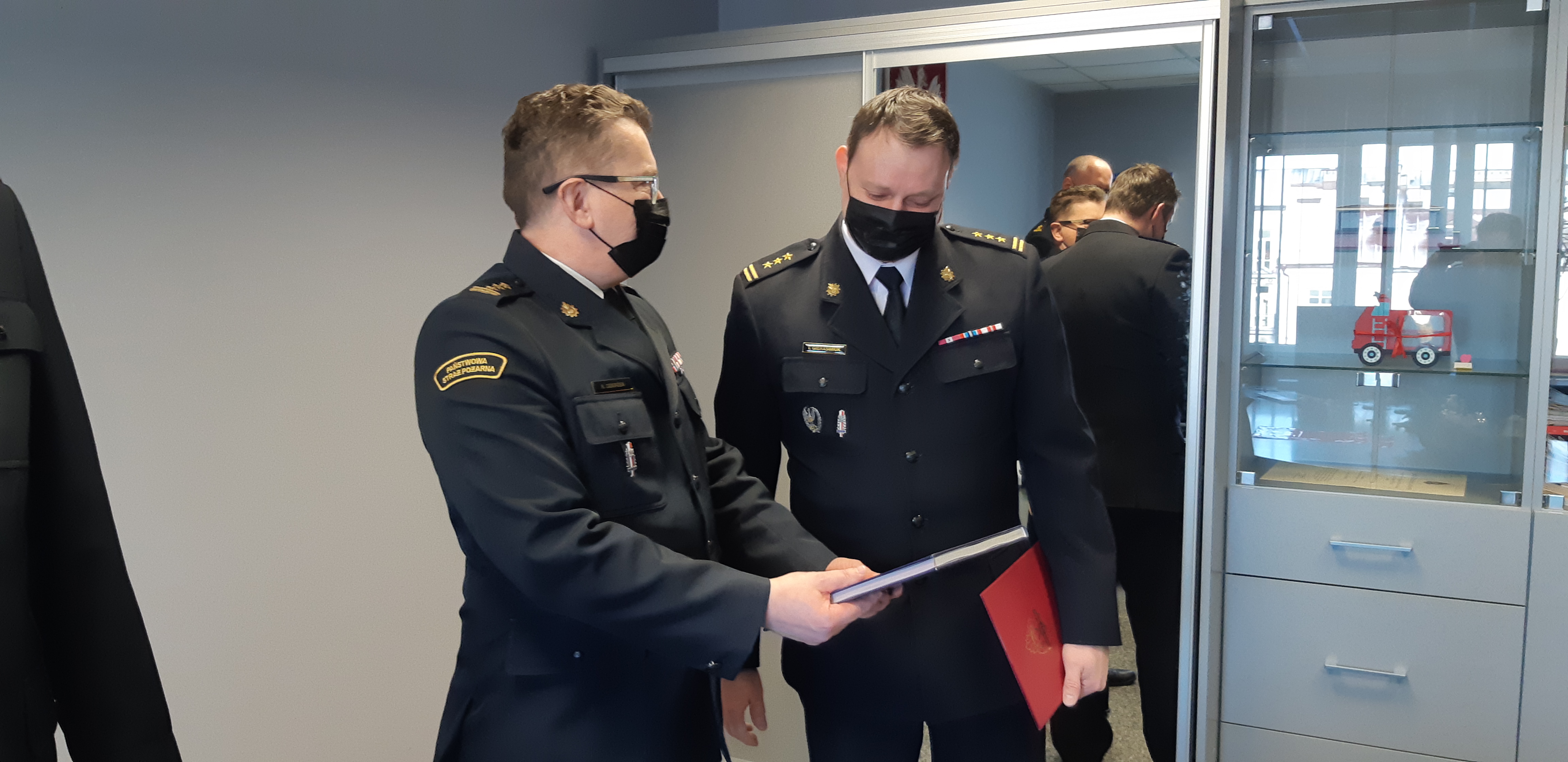 Zastępca Komendanta Wojewódzkiego Państwowej Straży Pożarnej w Białymstoku st. bryg. mgr inż. Robert Tadeusz Dzierżek następnie Zastępca Komendanta Miejskiego Państwowej Straży Pożarnej w Białymstoku bryg. mgr Radosław Pułtorak oraz Naczelnik Wydziału Organizacyjno-Kadrowego kpt. mgr inż. Karol Sulima złożyli odchodzącemu na zaopatrzenie emerytalne funkcjonariuszowi wyrazy uznania za okazaną w czasie służby staranność, troskę i odpowiedzialność na zajmowanym stanowisku oraz podziękowania za wieloletnią służbę w pożarnictwie.
