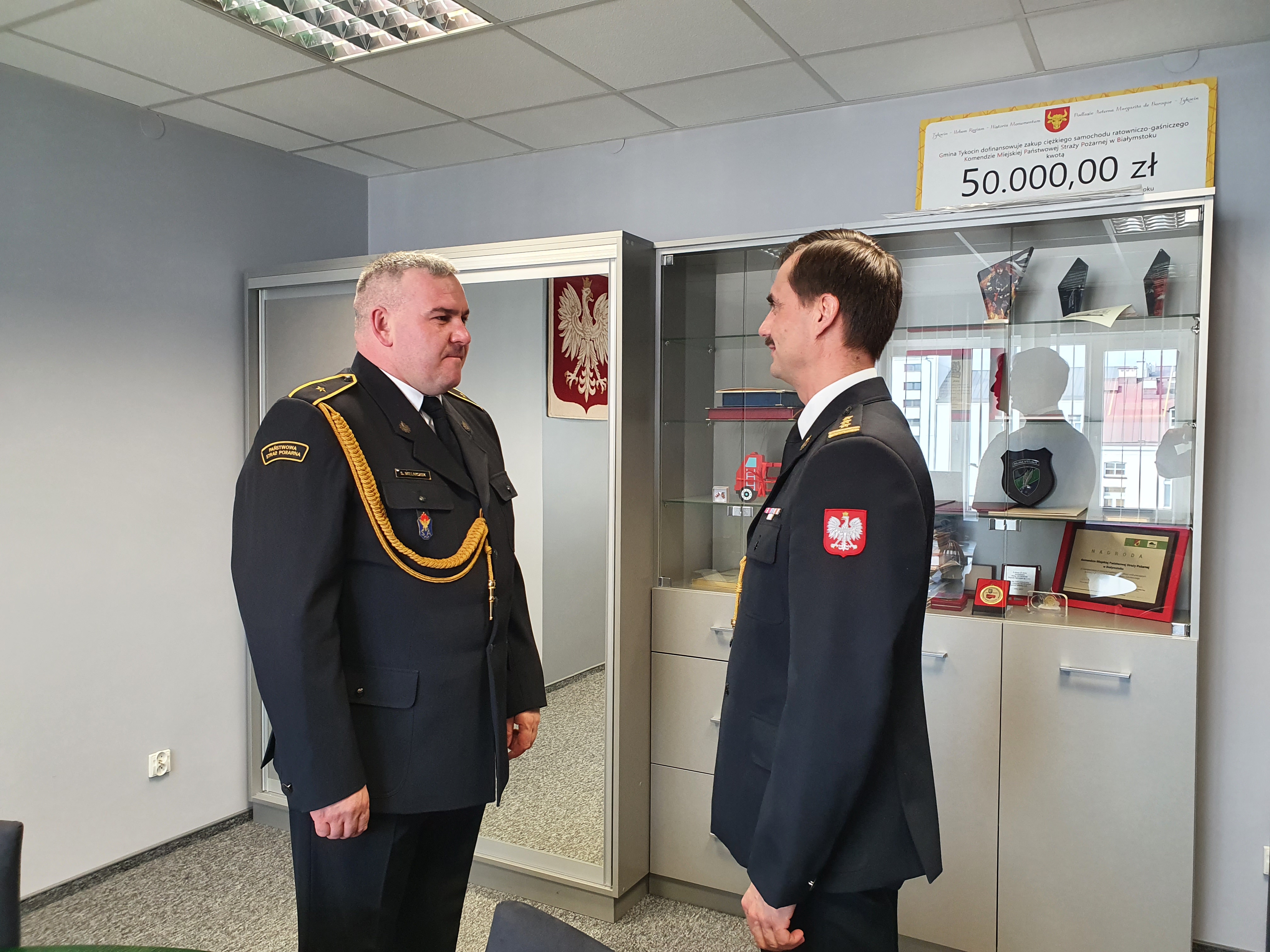 Komendant Miejski PSP w Białymstoku st. bryg. mgr inż. Paweł Piotr Ostrowski, a następnie Zastępca Komendanta Miejskiego PSP w Białymstoku bryg. mgr inż. Tomasz Birycki złożyli funkcjonariuszowi wyrazy uznania i podziękował za wieloletnią oraz pełną zaangażowania służbę na rzecz Państwowej Straży Pożarnej.