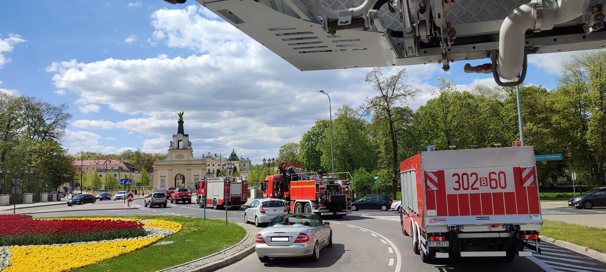 oraz Komendy Miejskiej PSP w Białymstoku złożyła kwiaty. Następnie, po zakończonym przejeździe kolumny pojazdów pożarniczych, delegacja udała się do Jednostki Ratowniczo-Gaśniczej nr 2 KM PSP w Białymstoku, gdzie również złożono kwiaty przy obelisku „Pamięci Tych Co Zostali Po Tamtej Stronie Ognia”.