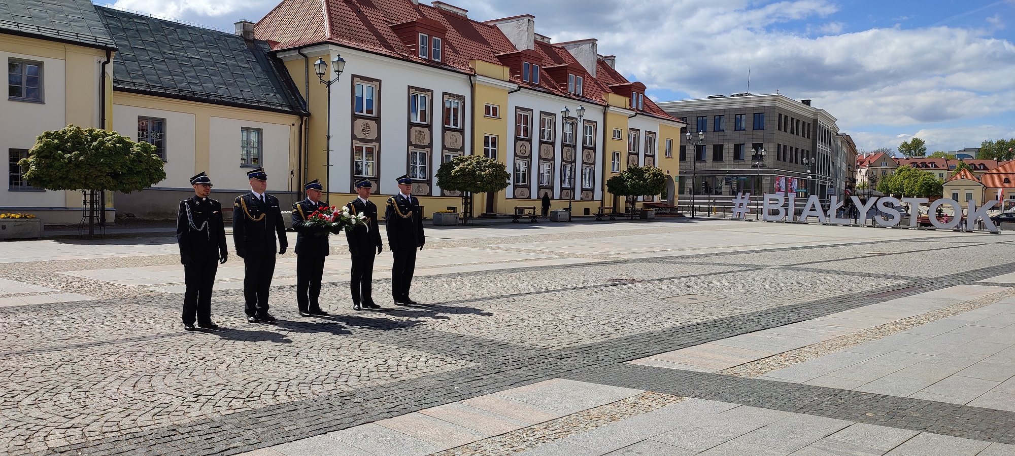 Po dojeździe do Placu Jana Pawła II, nastąpiło zatrzymanie kolumny, gdzie przy pomniku Marszałka Józefa Piłsudskiego wspólna delegacja z Komendy Wojewódzkiej PSP w Białymstoku