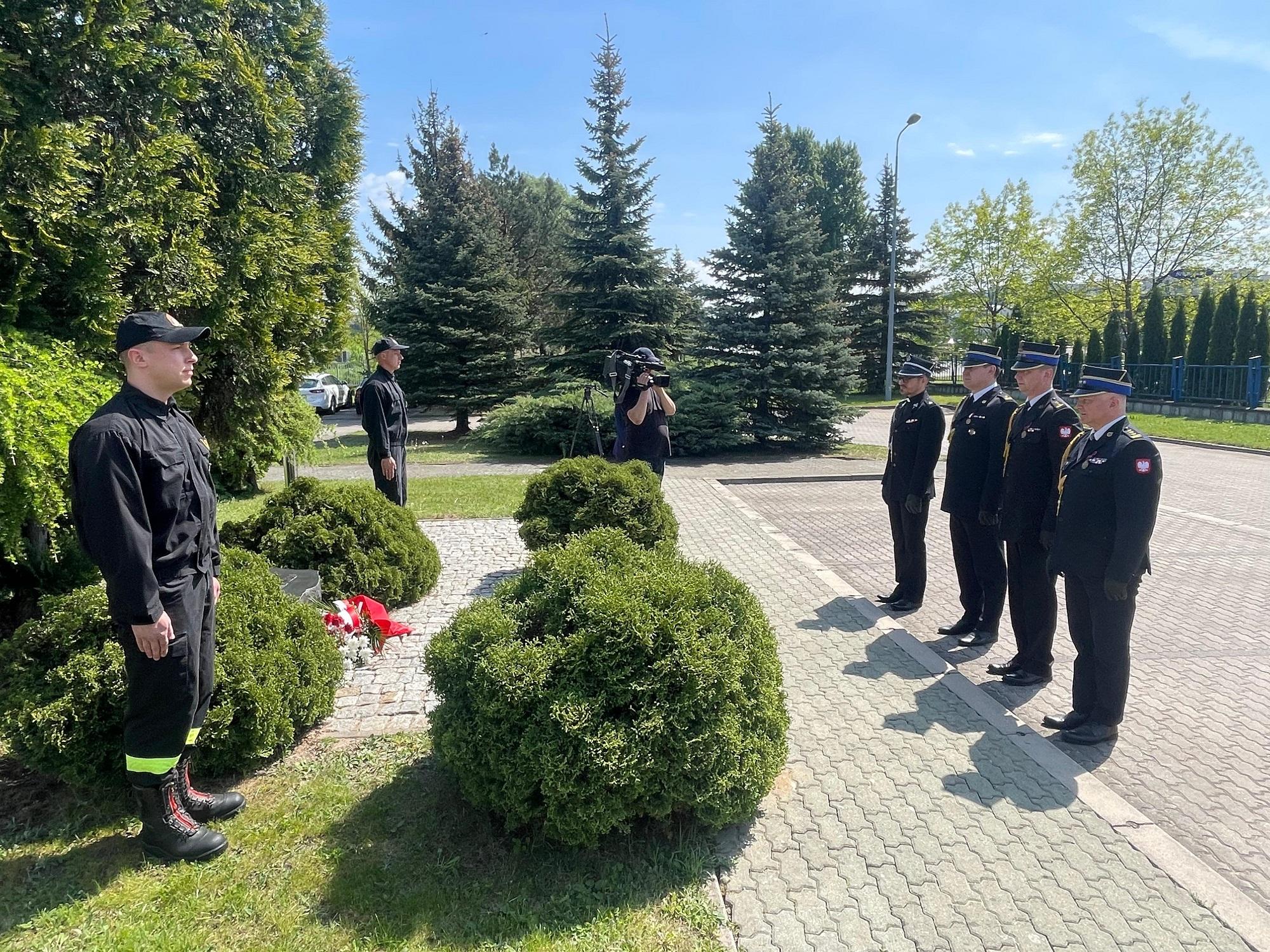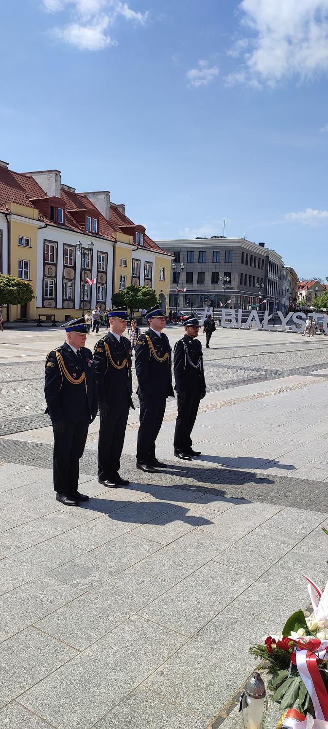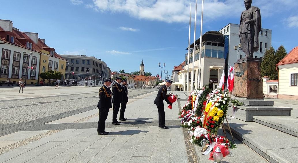 Po dojeździe do Placu Jana Pawła II nastąpiło zatrzymanie kolumny, gdzie przy pomniku Marszałka Józefa Piłsudskiego Zastępca Podlaskiego Komendanta Wojewódzkiego PSP – st. bryg. Marcin Wierel, Komendant Miejski PSP w Białymstoku – st. bryg. Dariusz Koc wraz ze swoim Zastępcą – mł. bryg. Andrzejem Płońskim oraz ks. prot. Piotr Borowik – kapelan wojewódzki PSP złożyli kwiaty. Po zakończonym przejeździe kolumny pojazdów pożarniczych Komendanci wraz z kapelanem udali się do Jednostki Ratowniczo-Gaśniczej nr 2 KM PSP w Białymstoku, gdzie przy obelisku „Pamięci Tych Co Zostali Po Tamtej Stronie Ognia” również złożyli kwiaty.