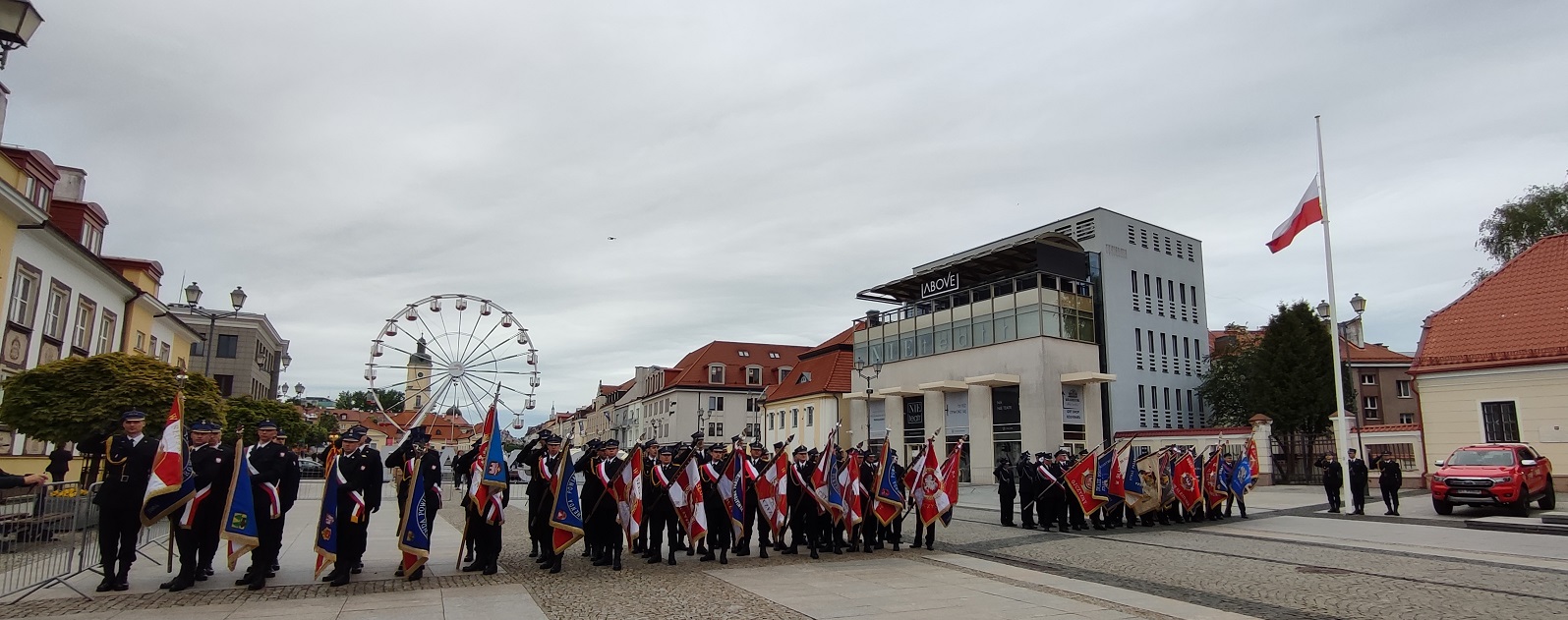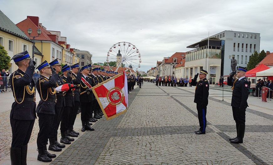 Zastępca Komendanta Głównego PSP nadbryg. Arkadiusz Przybyła wziął udział w uroczystym apelu z okazji Dnia Strażaka, który odbył się w samo południe 19 maja 2023 roku na placu przy pomniku Marszałka Józefa Piłsudskiego w Białymstoku.
