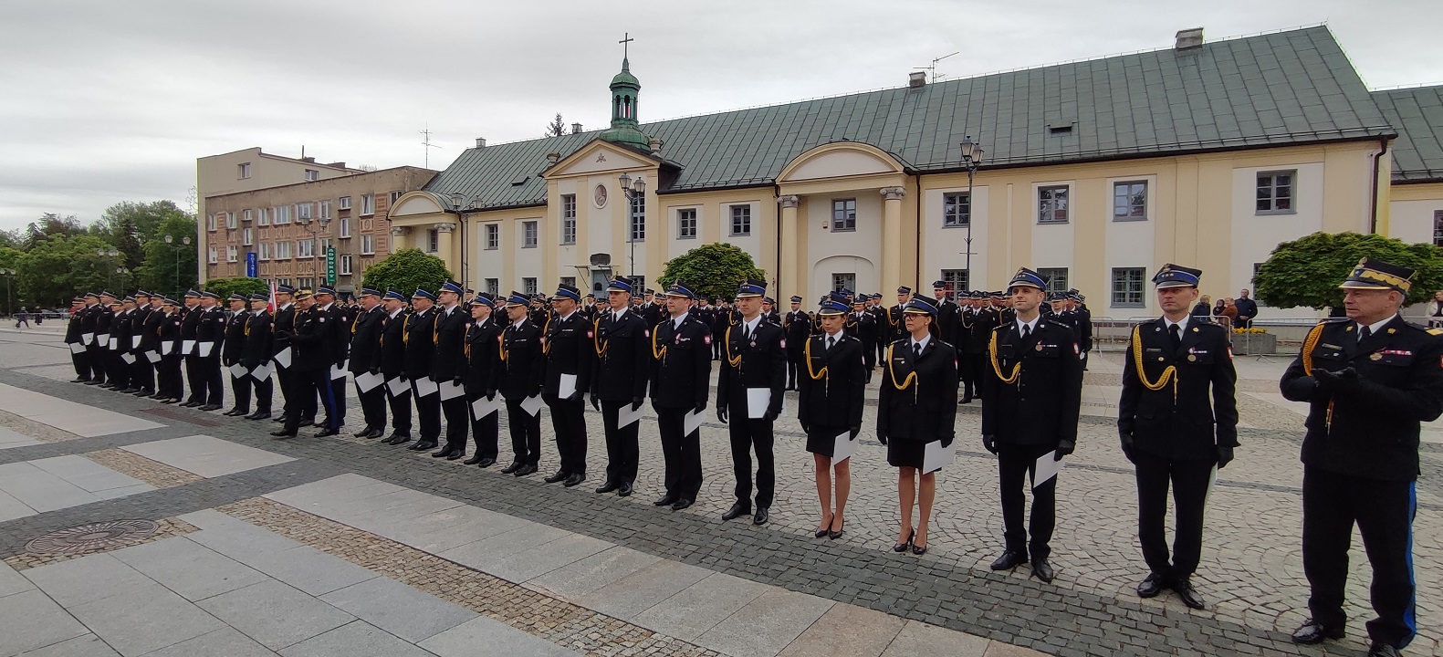 Nadbryg. Arkadiusz Przybyła podziękował wszystkim strażakom za ich codzienną służbę, szczególnie za działania prowadzone w 2022 roku, których łącznie było ponad 600 tysięcy oraz pogratulował wszystkim wyróżnionym i awansowanym. Następnie pod pomnikiem Marszałka Józefa Piłsudskiego został złożony wieniec.
