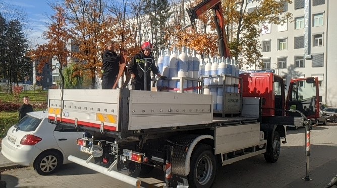 W dniu 19.10.2021 roku strażacy z Białegostoku brali udział w transporcie sprężonego tlenu medycznego z Bazy Tlenu JRG Nr 2 Białystok do Uniwersyteckiego Szpitala Klinicznego w Białymstoku. Do placówki dostarczono 36 butli z tlenem o pojemności 50 litrów.