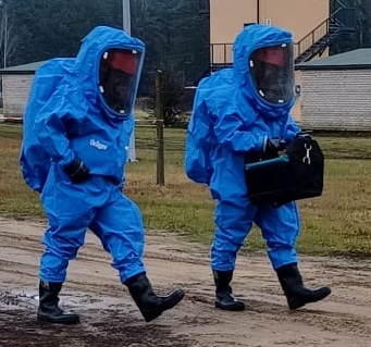 17 listopada 2025 r. strażacy Specjalistycznej Grupy Ratownictwa Chemiczno-Ekologicznego "Białystok 2" brali udział we wspólnych ćwiczeniach z Policją, które odbyły się na terenie Wodociągów Białostockich oraz na poligonie "Zielona".