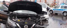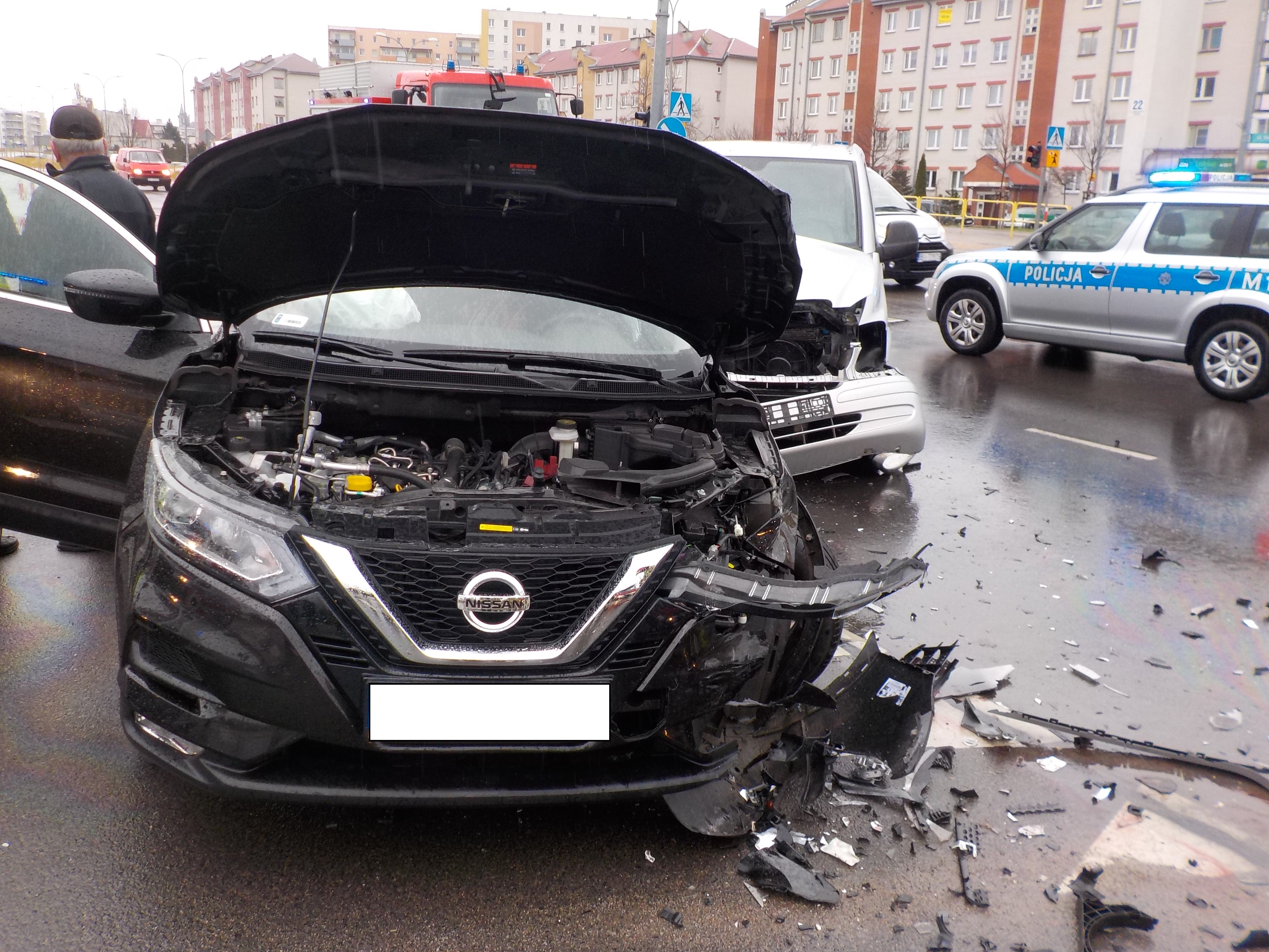Do zdarzenia zadysponowano zastępy z JRG nr 3 i JRG nr 2. Na miejscu zastano dwa pojazdy osobowe po zderzeniu, stojące na środku skrzyżowania. Kierująca Mercedesem Vito kobieta i troje dzieci przebywali pod opieką zespołu ratownictwa medycznego. Kierujący Nissanem mężczyzna nie uskarżał się na dolegliwości związane ze zdarzeniem, pasażerka zgłaszała ból w klatce piersiowej. Po przebadaniu przez ZRM wszyscy uczestnicy zdarzenia pozostali na miejscu. Działania jednostek PSP polegały na wygrodzeniu terenu działań pachołkami, odłączeniu akumulatorów w pojazdach i usunięciu plamy płynów eksploatacyjnych z jezdni, przy użyciu sorbentu i roztworu neutralizatora. Jezdnię zmyto prądem wody z szybkiego natarcia. Na czas prowadzenia działań ruch drogowy został wstrzymany przez Policję.