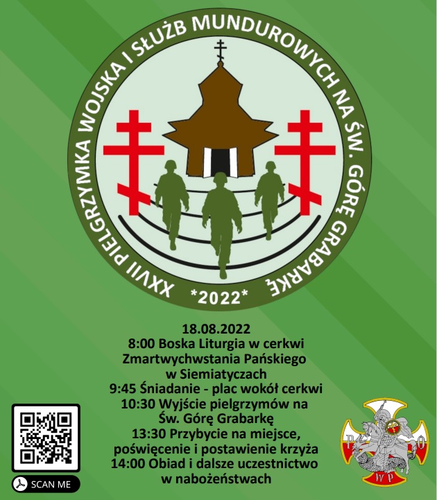 W dniach 17-19 sierpnia 2022 roku odbędzie XXVII Piesza Pielgrzymka Wojska i Służb Mundurowych na Św. Górę Grabarkę.