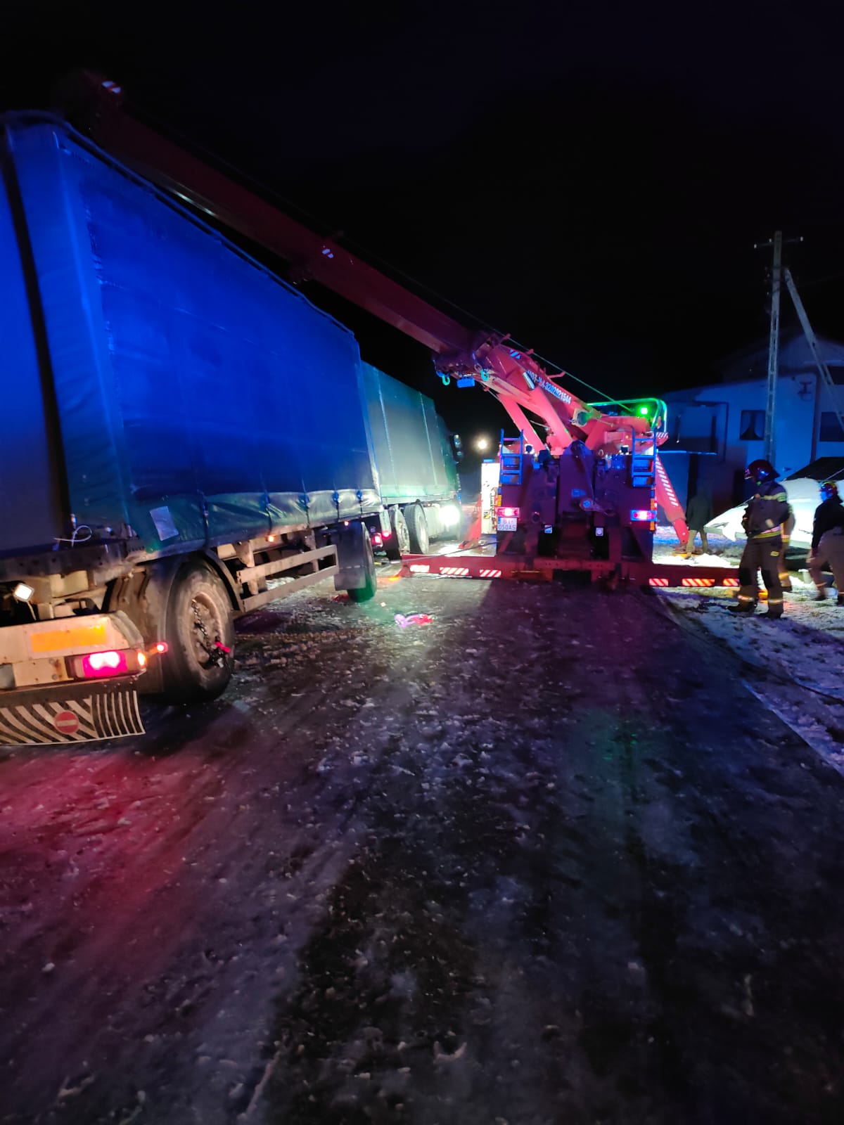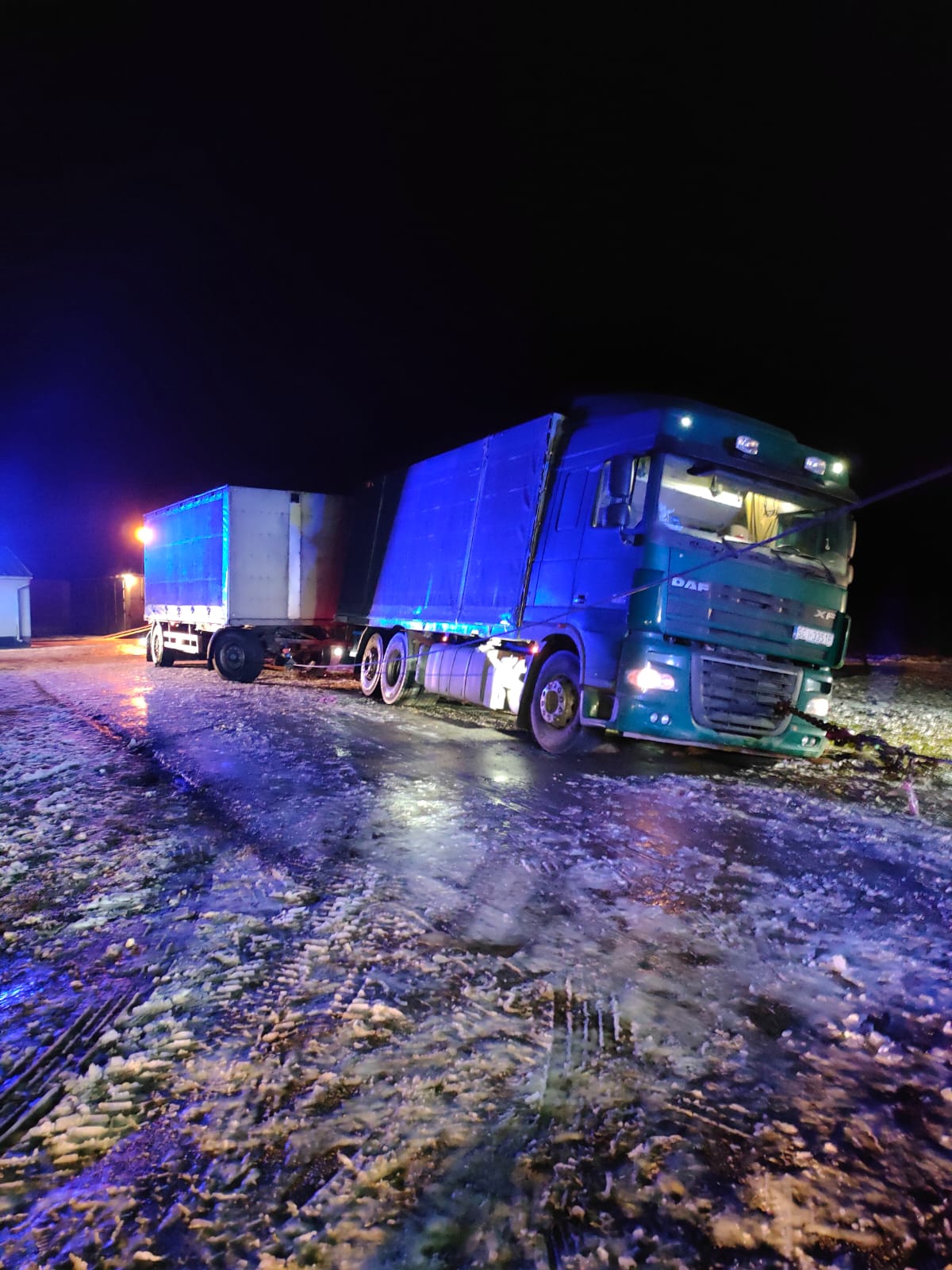 W dniu 30 stycznia 2023 r. po godzinie 22:00 dwa zastępy z Jednostki Ratowniczo-Gaśniczej nr 4 Komendy Miejskiej Państwowej Straży Pożarnej w Białymstoku zostały zadysponowane do pomocy w wyciągnięciu zestawu samochodu ciężarowego z przyczepą w miejscowości Knyszyn (powiat moniecki).