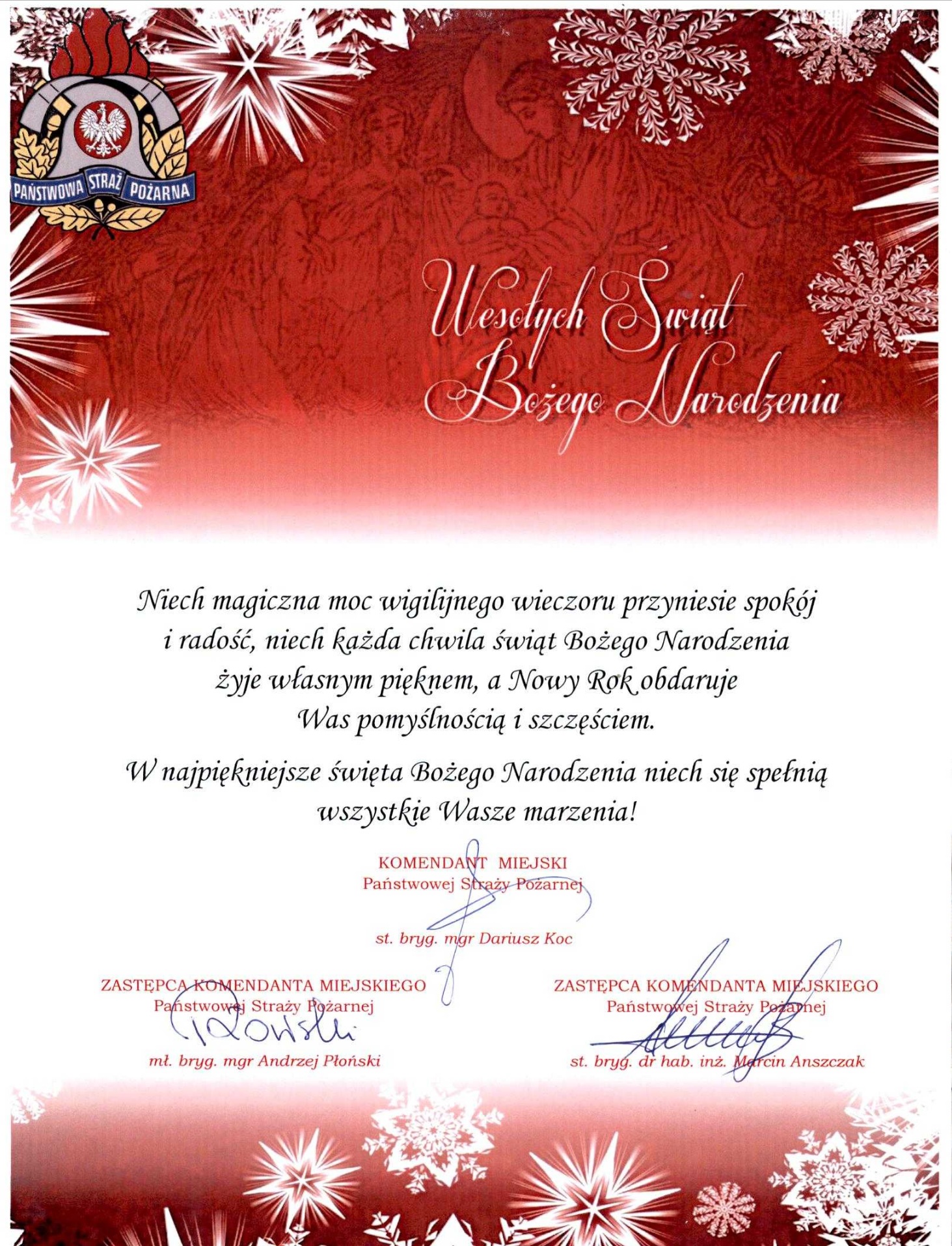 Życzenia Świąteczne Komendanta Miejskiego PSP w Białymstoku 23.12.2025 Zdjęcia (1) Pokaż zdjęcie 1 z galerii.