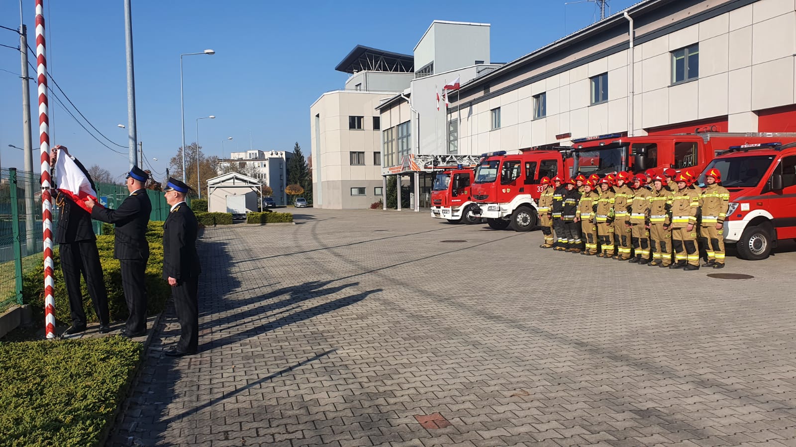 11 listopada punktualnie o godzinie 12.00 w dniu Narodowego Święta Niepodległości na placu wewnętrznym jednostki ratowniczo-gaśniczej nr 1 w Bielsku-Białej strażacy podczas uroczystego podniesienia flagi państwowej odśpiewali Mazurek Dąbrowskiego.