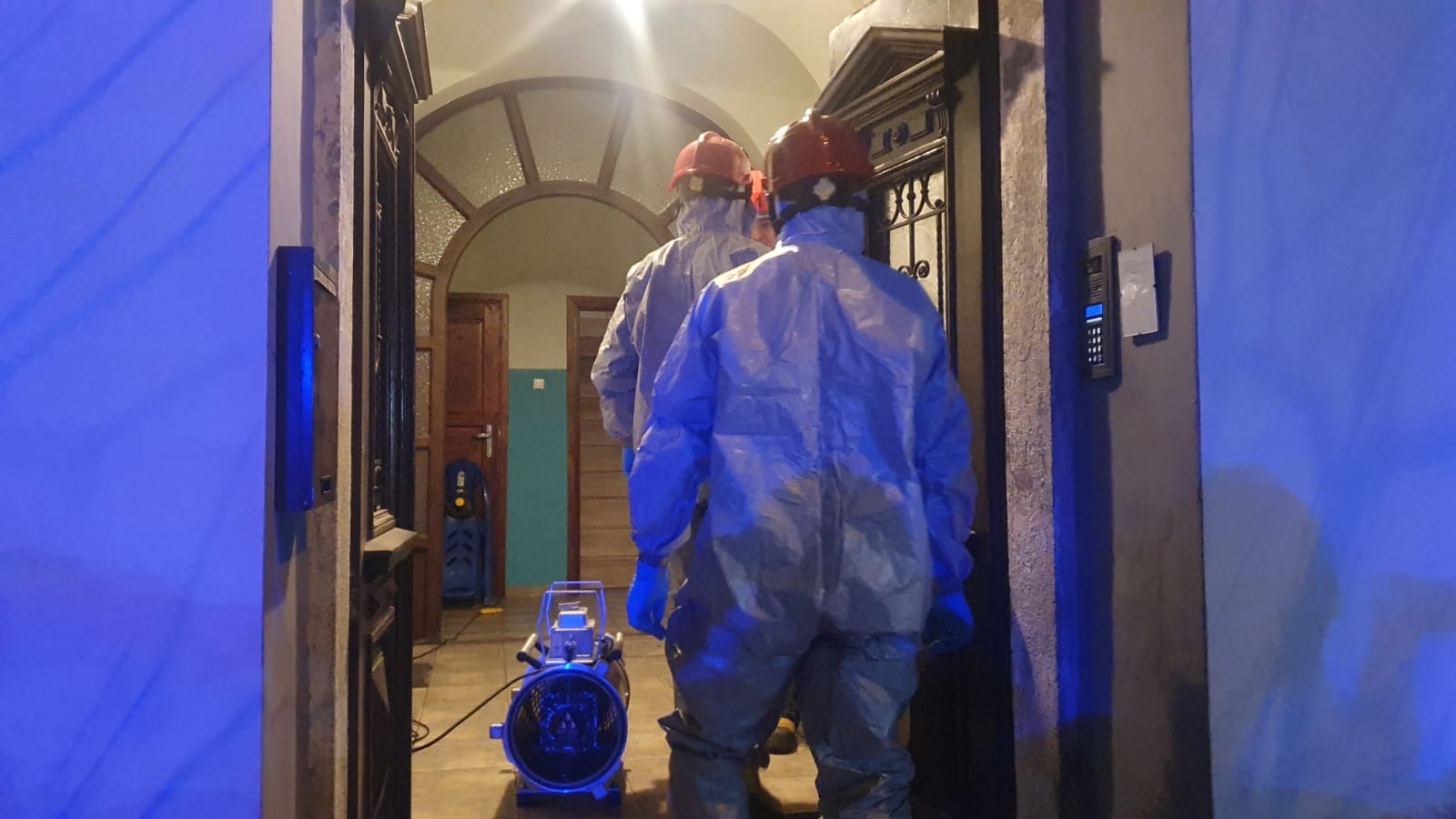 Strażacy zabezpieczyli miejsce działań. Wraz z właścicielem kamienicy ustalono, że wszyscy mieszkańcy znajdują się poza obiektem przed budynkiem - 8 osób. Następnie ratownicy zebrali pozostałości rozlanej substancji, a fabryczny słoik kwasu masłowego zabezpieczono. Następnie dokonano wentylacji i ozonowania klatki schodowej celem pozbycia się uporczywego zapachu. Wykonano neutralizację powierzchni płaskich przy pomocy wodorotlenku sodu. Pozostałości usunięto matami sorpcyjnymi i ściągaczką. Działania zakończono o godz. 23:11. Sprawcę zdarzenia ustala policja.