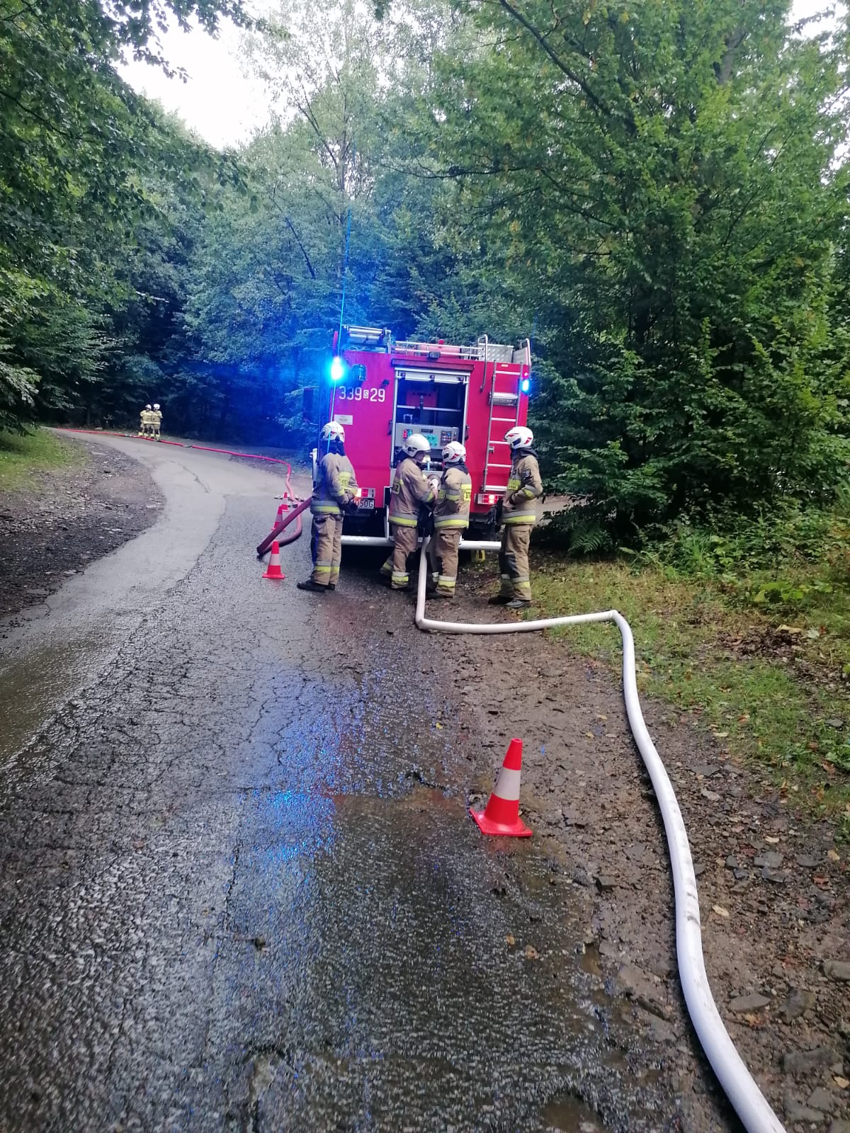 Dowódca akcji przez cały czas trwania akcji rozdzielał jednostki do działania w ramach Punktu Koncentracji Sił i Środków. Wodę, która zasilała strażackie zastępy pobierano z rzeki Wilkówka.