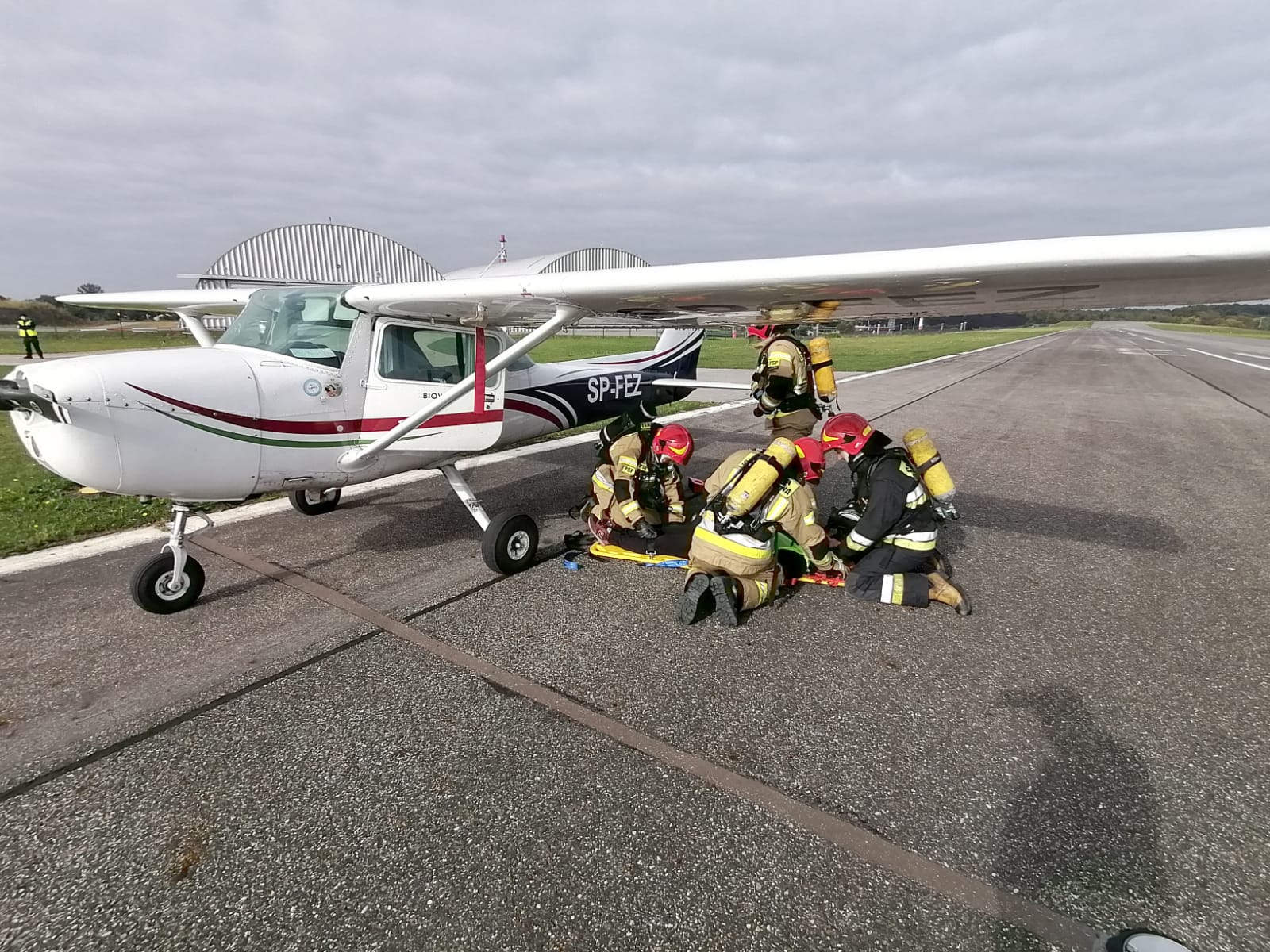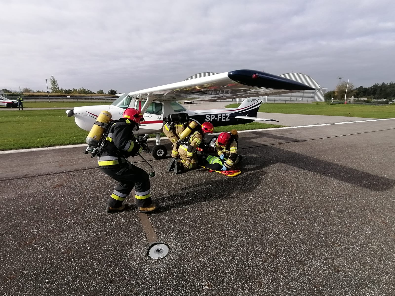 Wczoraj, 23 września br., na terenie lotniska Bielskiego Parku Technologicznego w Kaniowie odbyły się ćwiczenia, których scenariusz zakładał wypadek lotniczy. Poza jednostkami ochrony przeciwpożarowej, w ćwiczeniach brała udział administracja i służby porządkowe lotniska, pogotowie ratunkowe oraz policja.