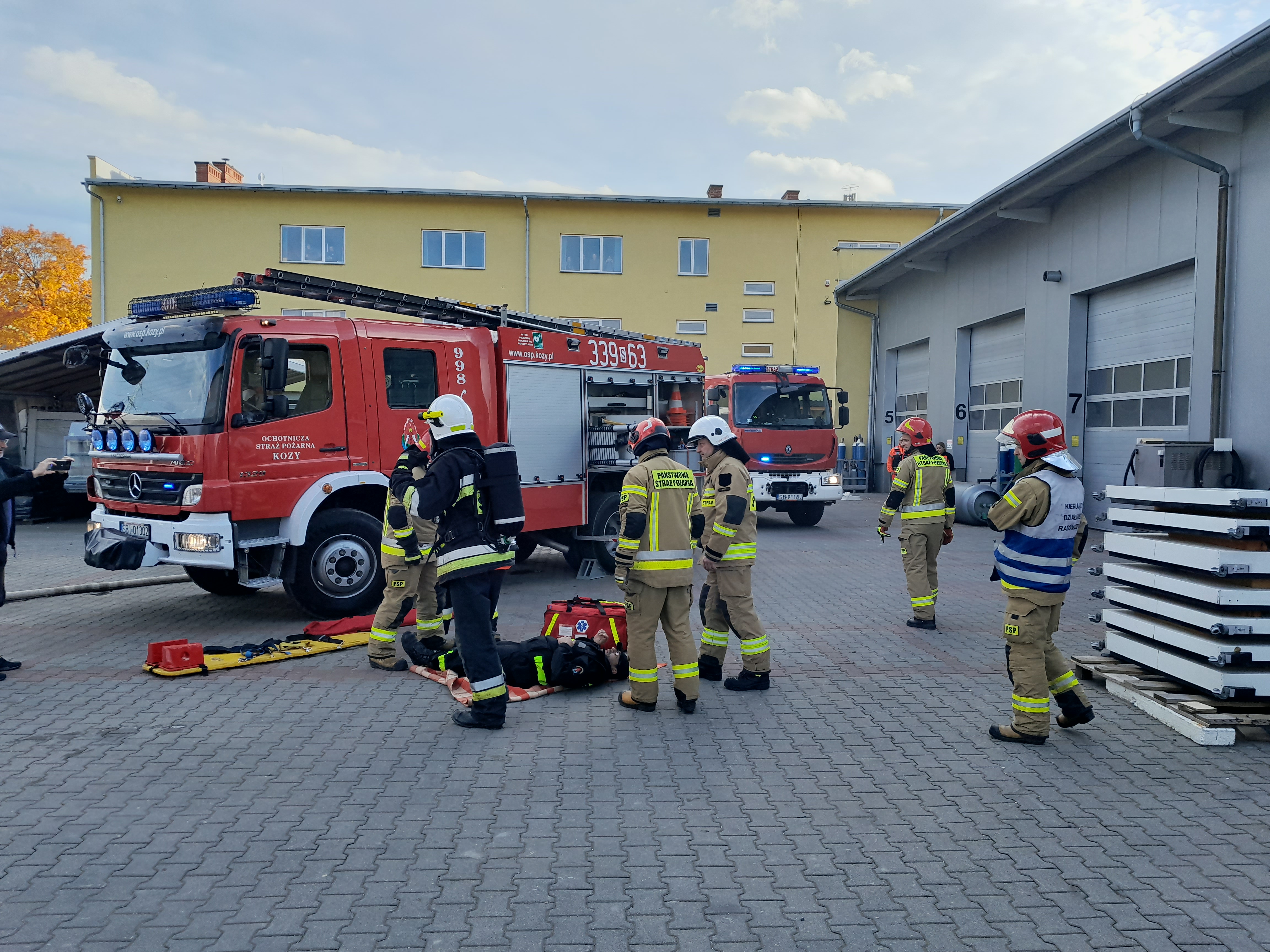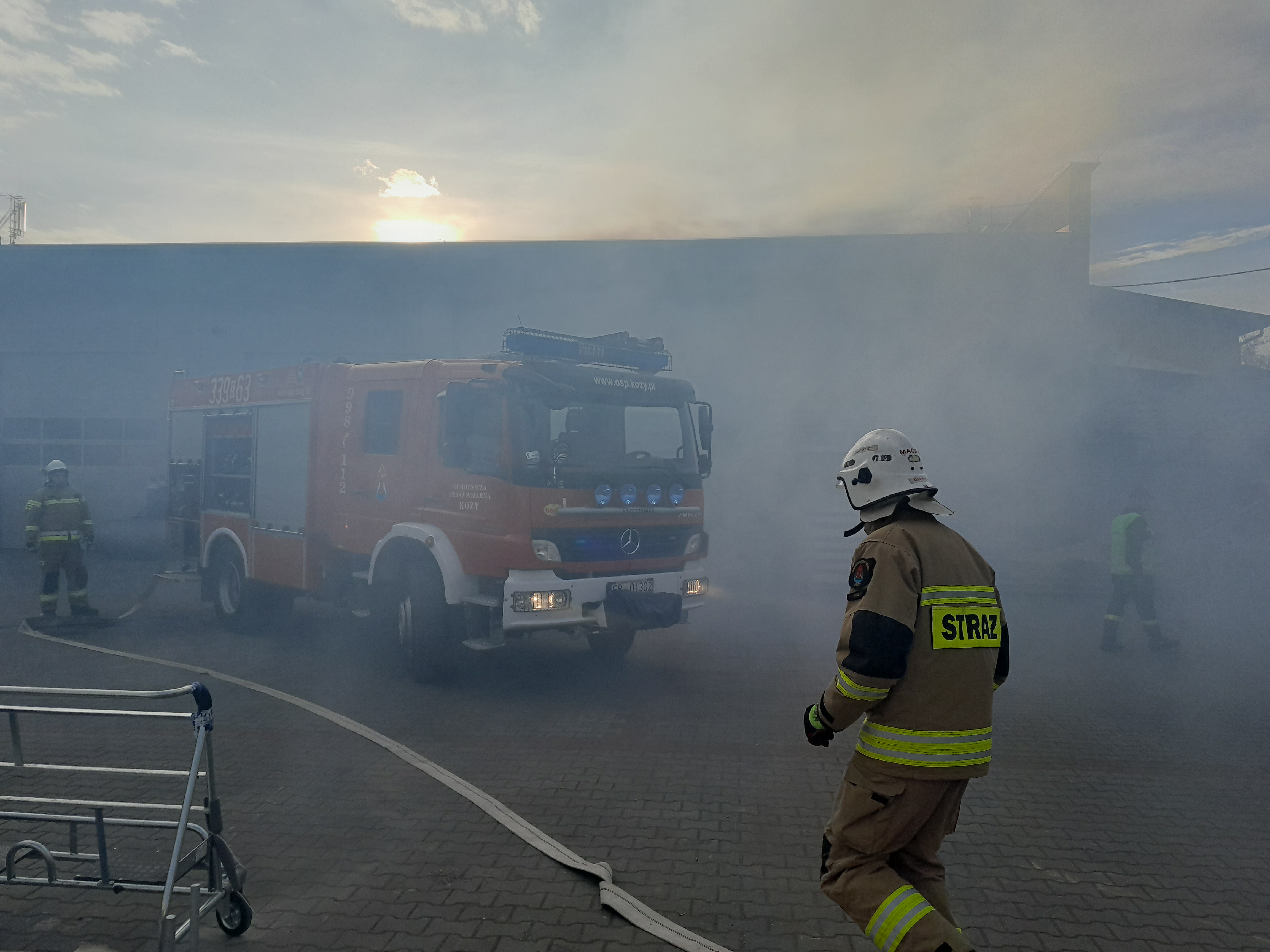 W czwartek, 21 października br. przeprowadzono ćwiczenia w celu rozpoznania możliwości i warunków prowadzenia działań ratowniczo - gaśniczych przez jednostki PSP i OSP na terenie firmy zajmującej się produkcją sprzętu chłodniczego KLIMORS w Kozach.