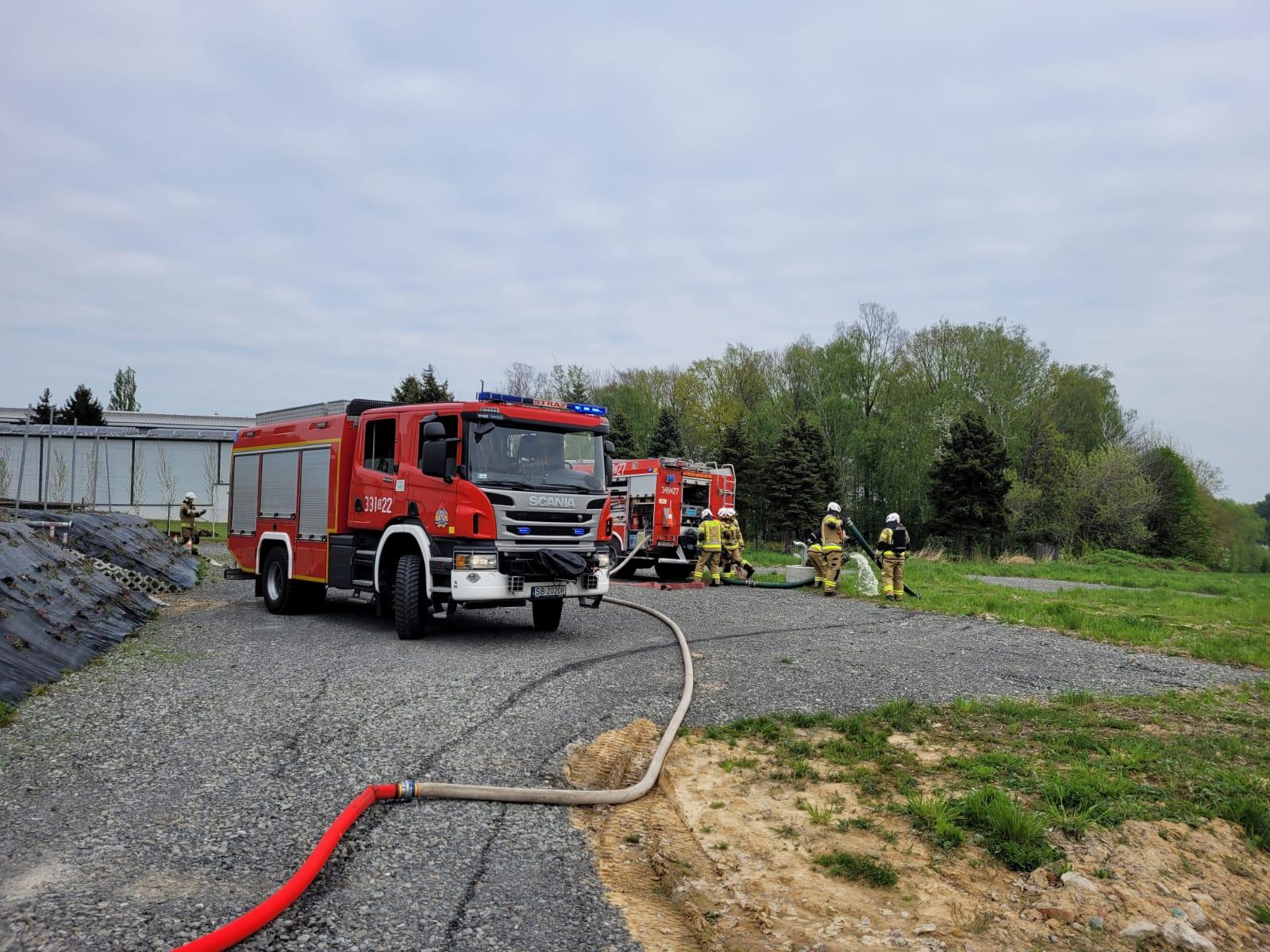 Kolejnym elementem ćwiczeń było doskonalenie umiejętności z zakresu zaopatrzenia wodnego ze źródeł zewnętrznych znajdujących się na terenie zakładu tj. hydranty i zewnętrzny zbiornik przeznaczony do celów przeciw pożarowych. Po zakończonych ćwiczeniach ratownicy zostali oprowadzeni po terenie zakładu.