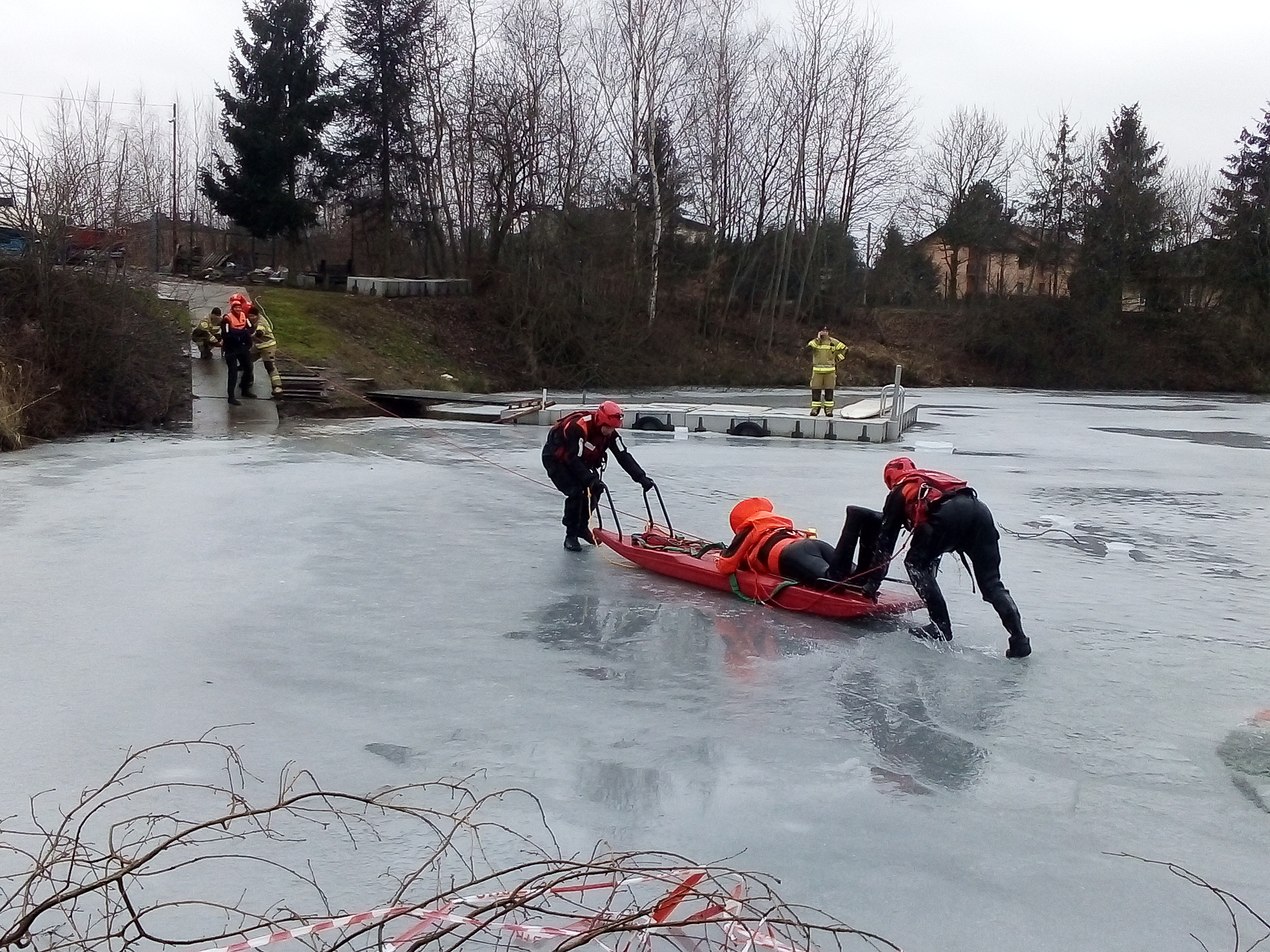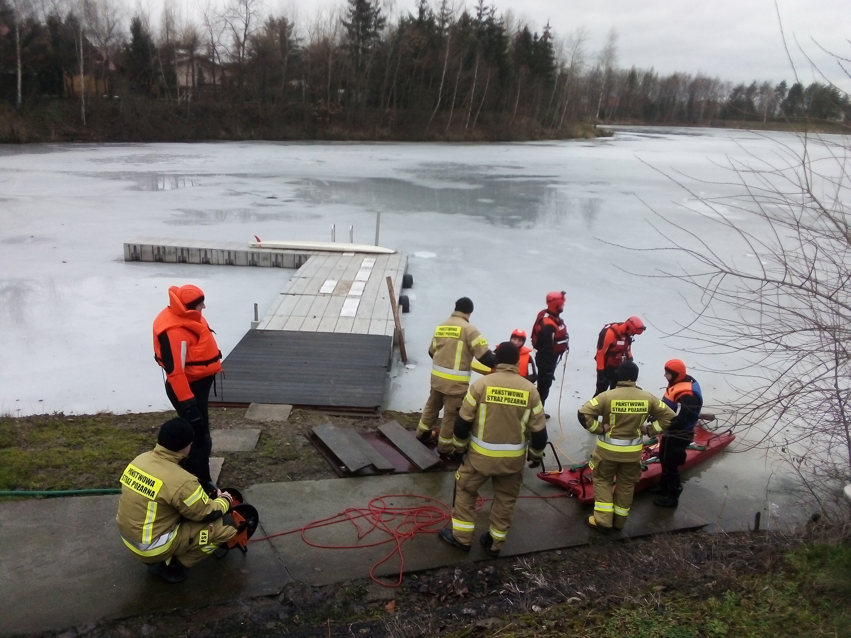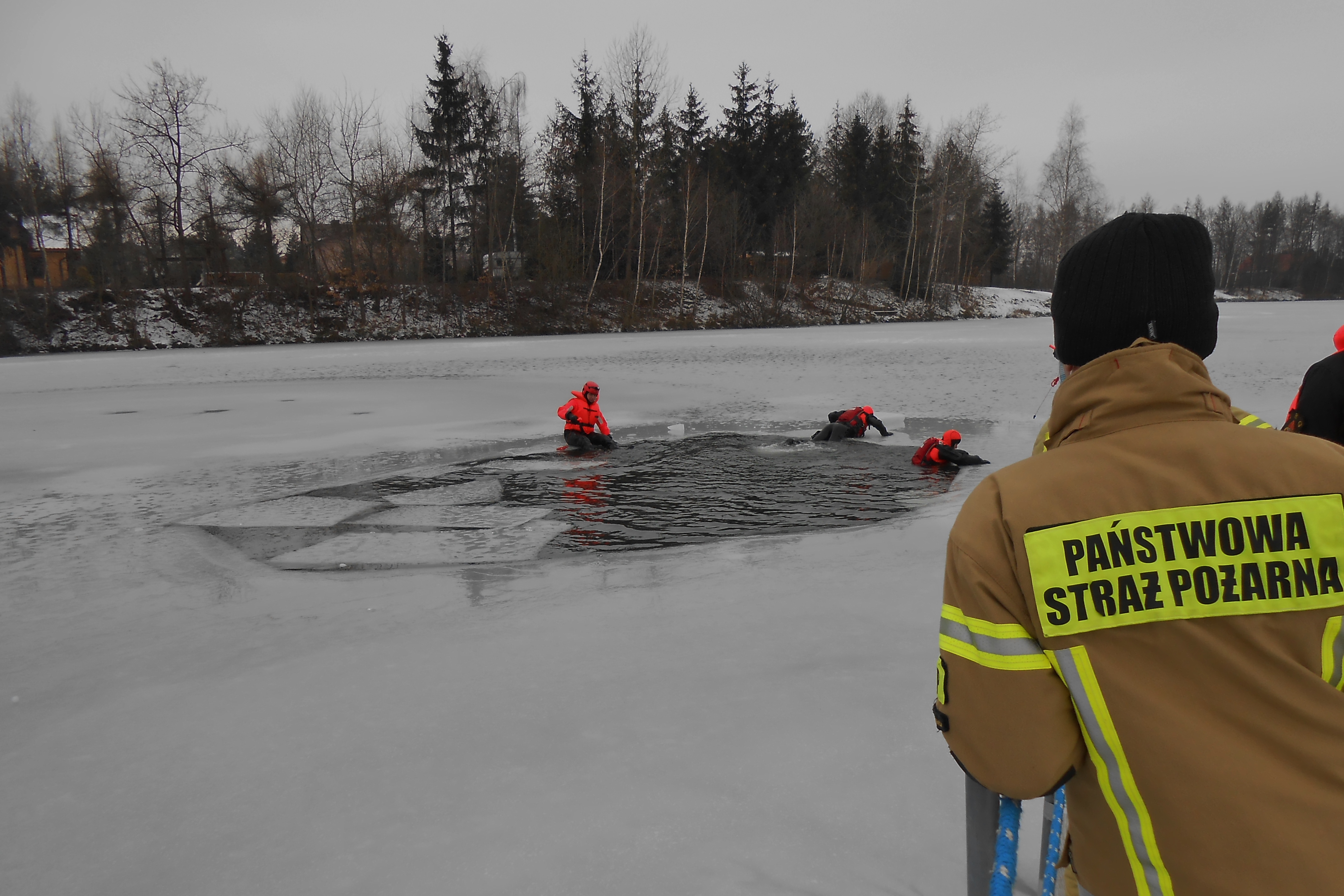 Ćwiczenia straży pożarnej na lodzie