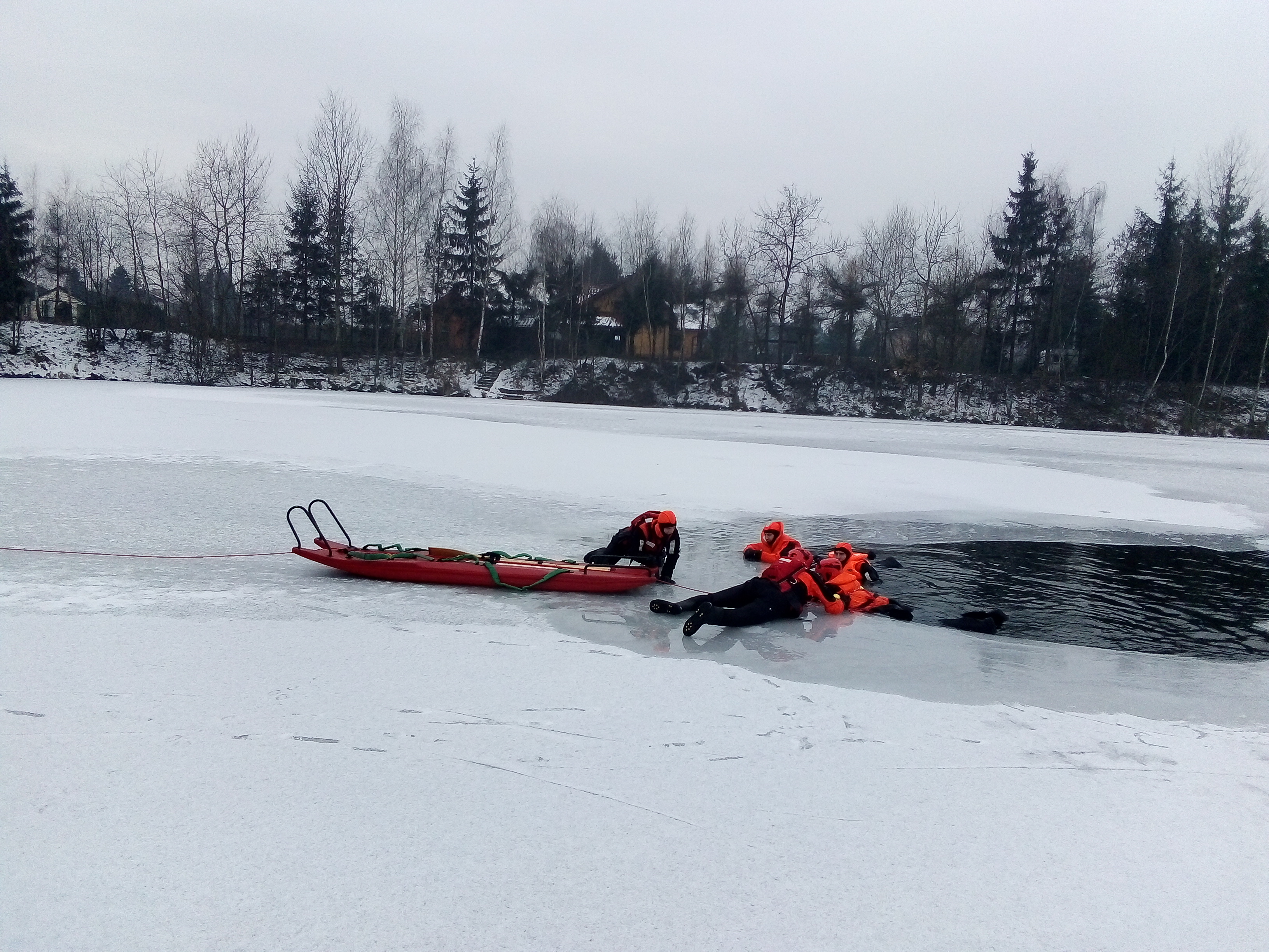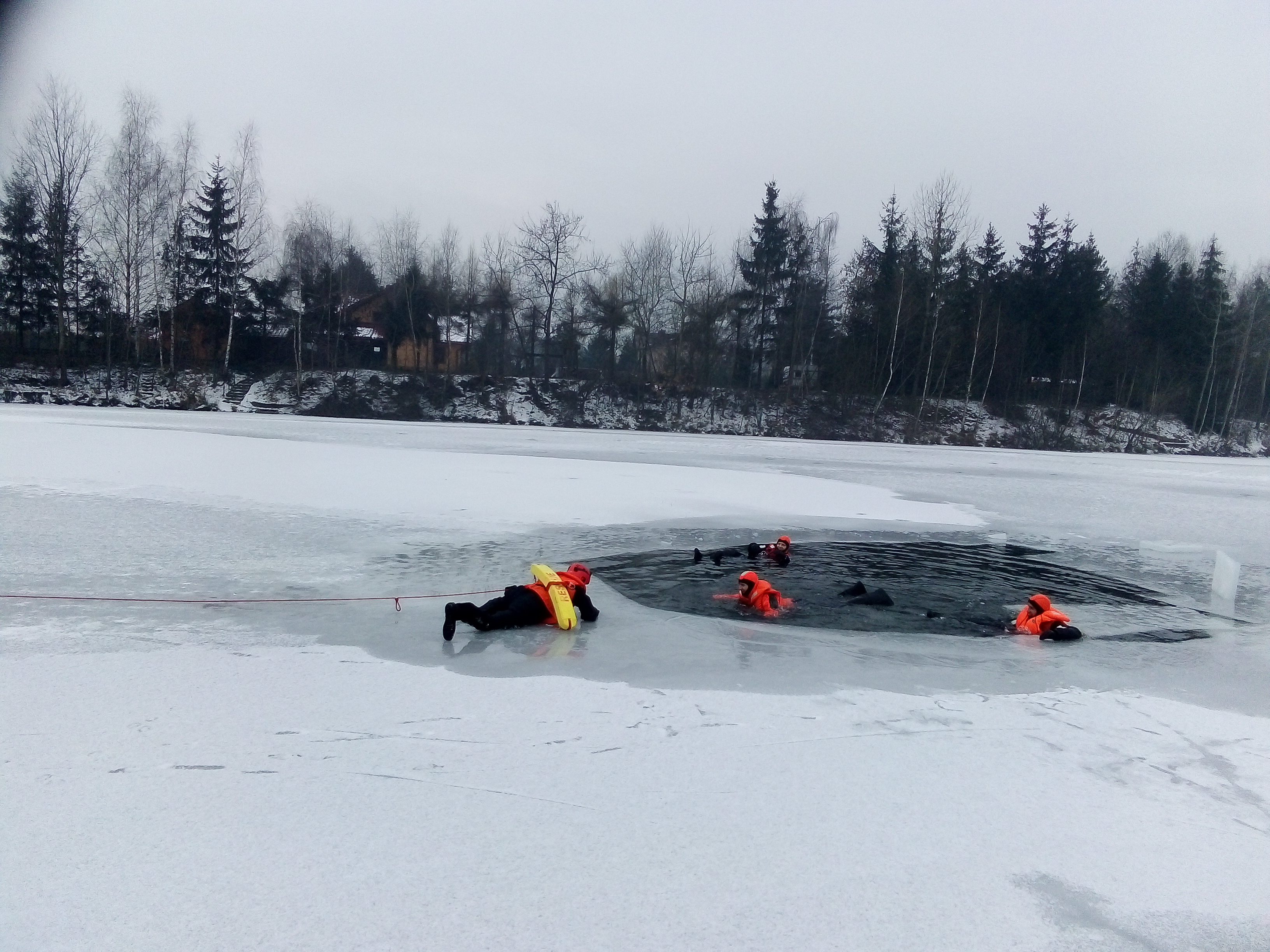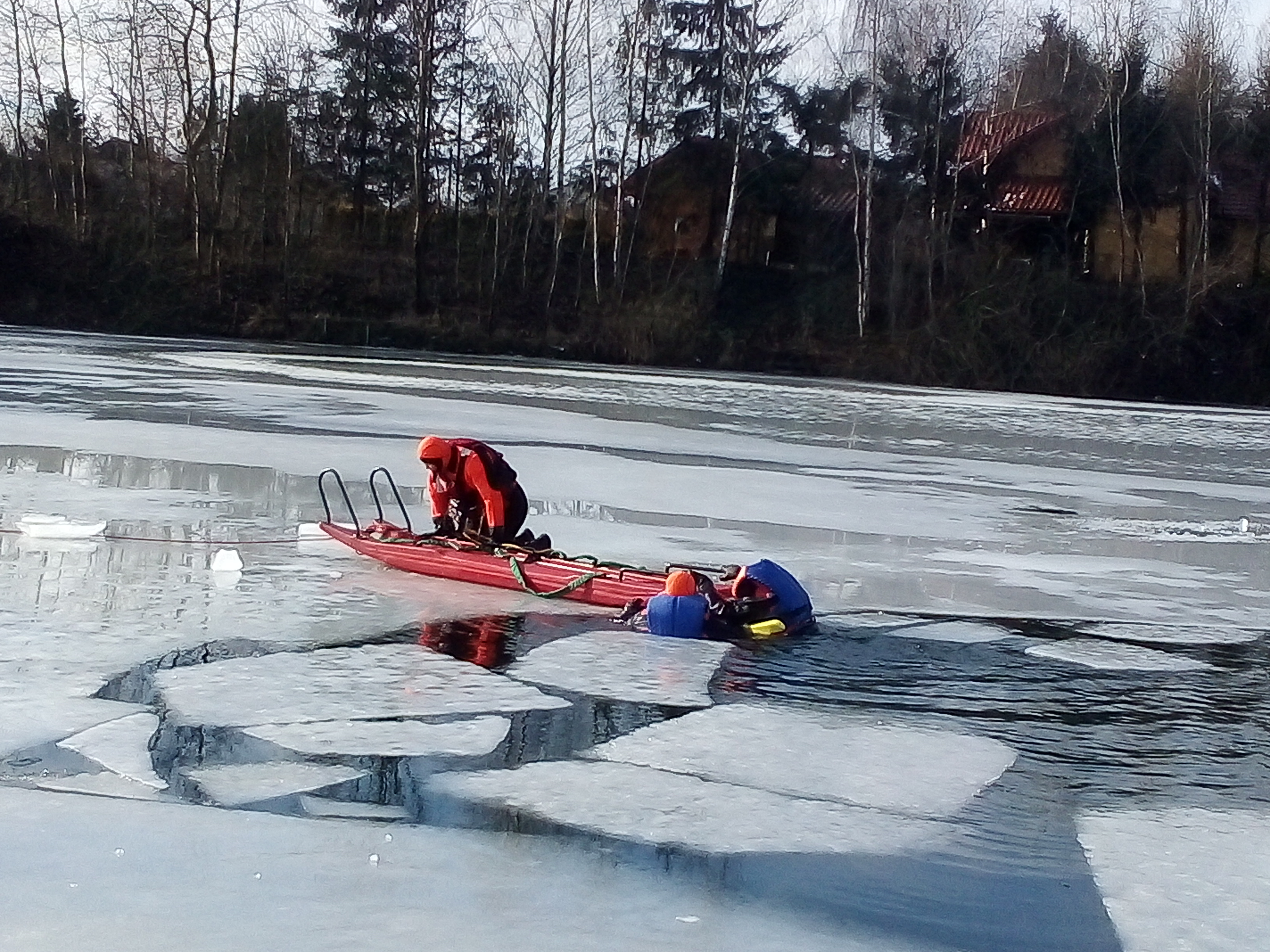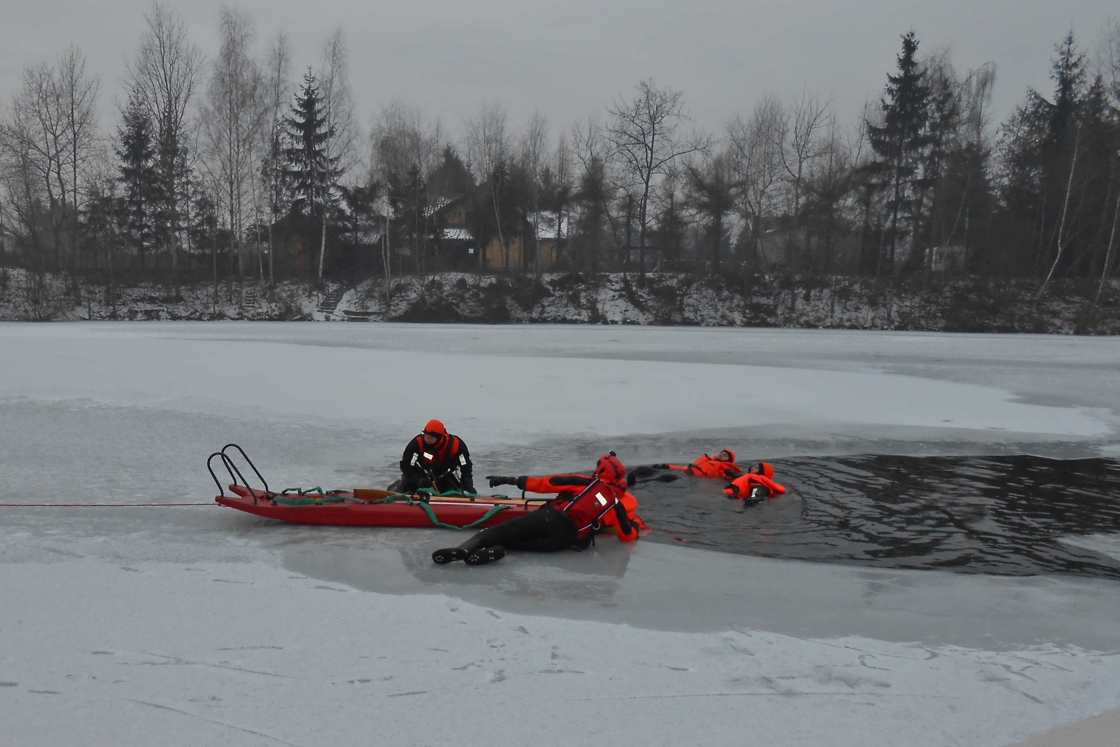 Ćwiczenia straży pożarnej na lodzie