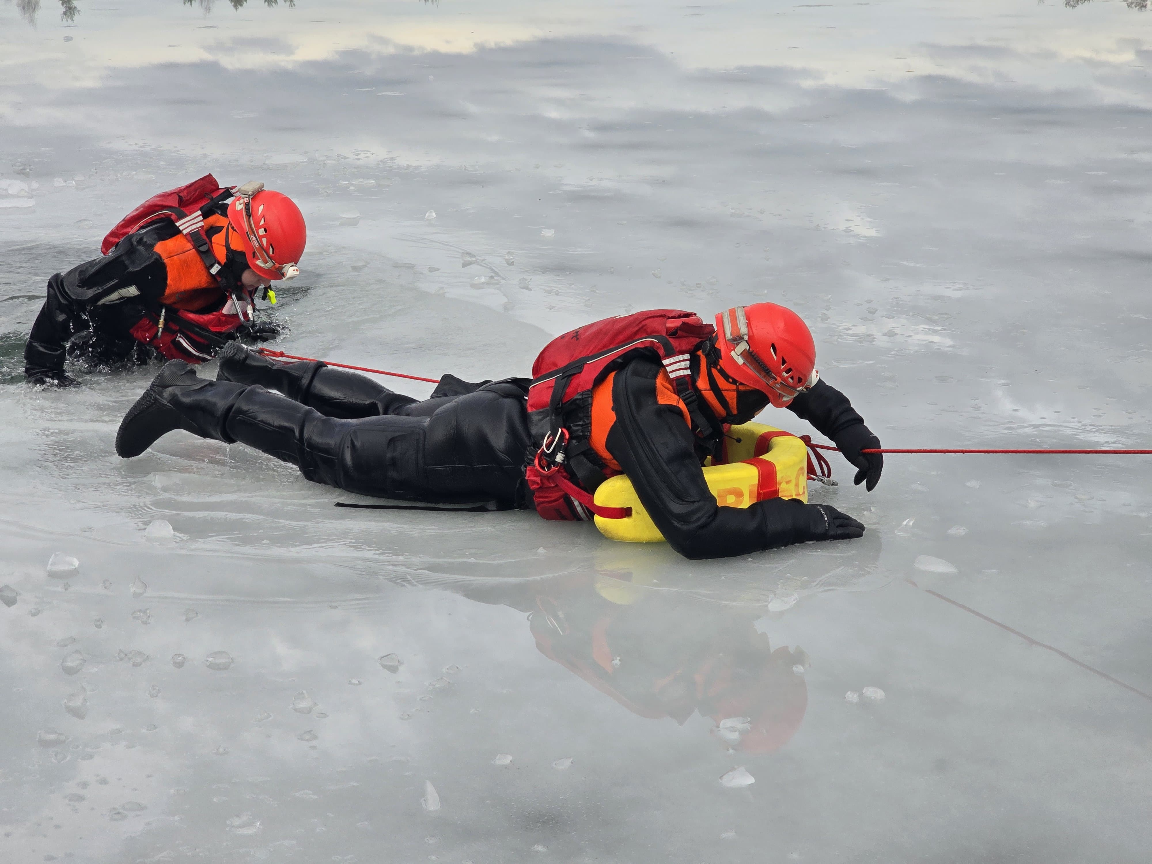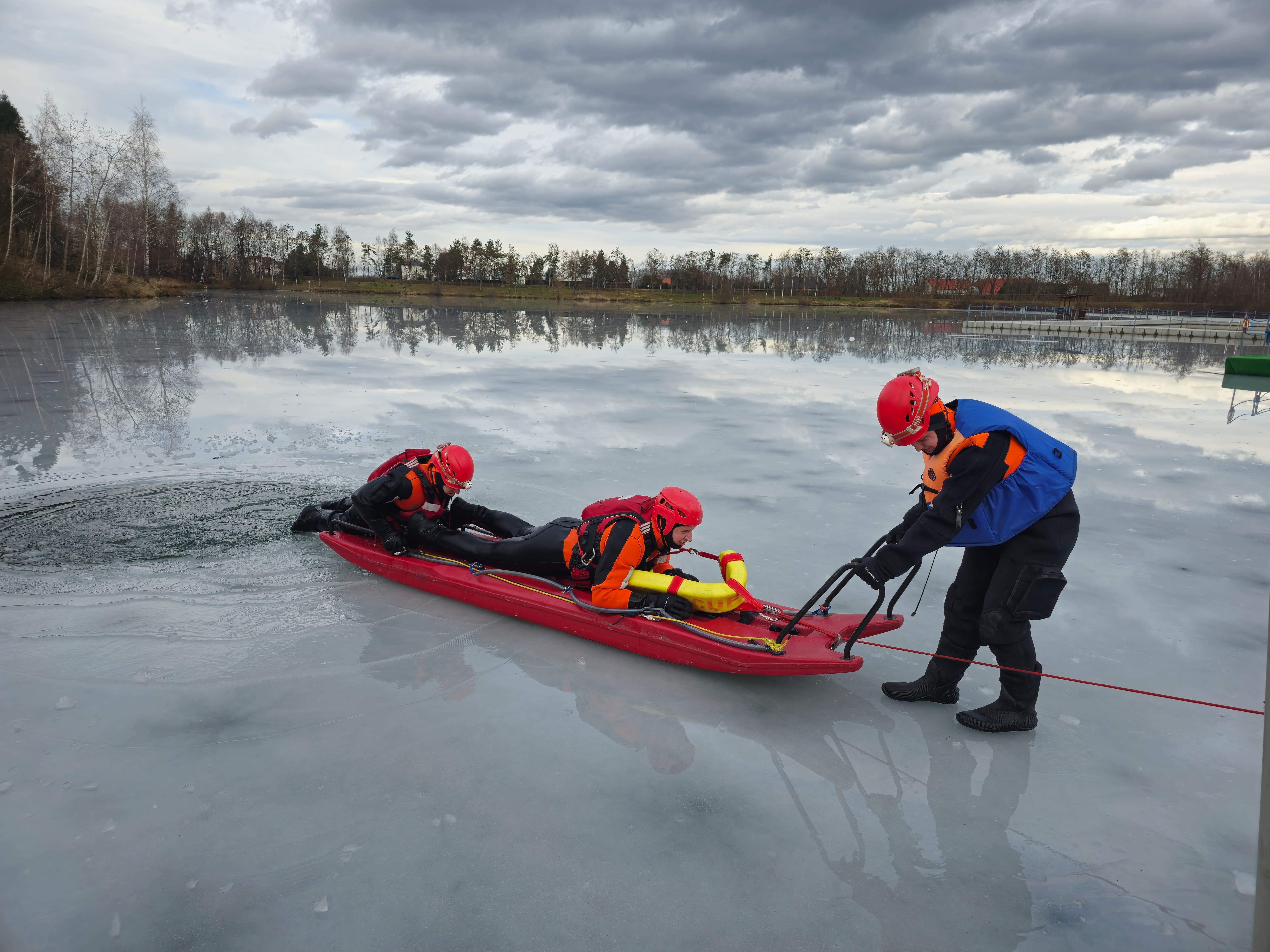 Straż Pożarna dysponuje specjalistycznym sprzętem do ratowania osób, pod którymi załamał się lód. Powiadom Nas jak najszybciej!