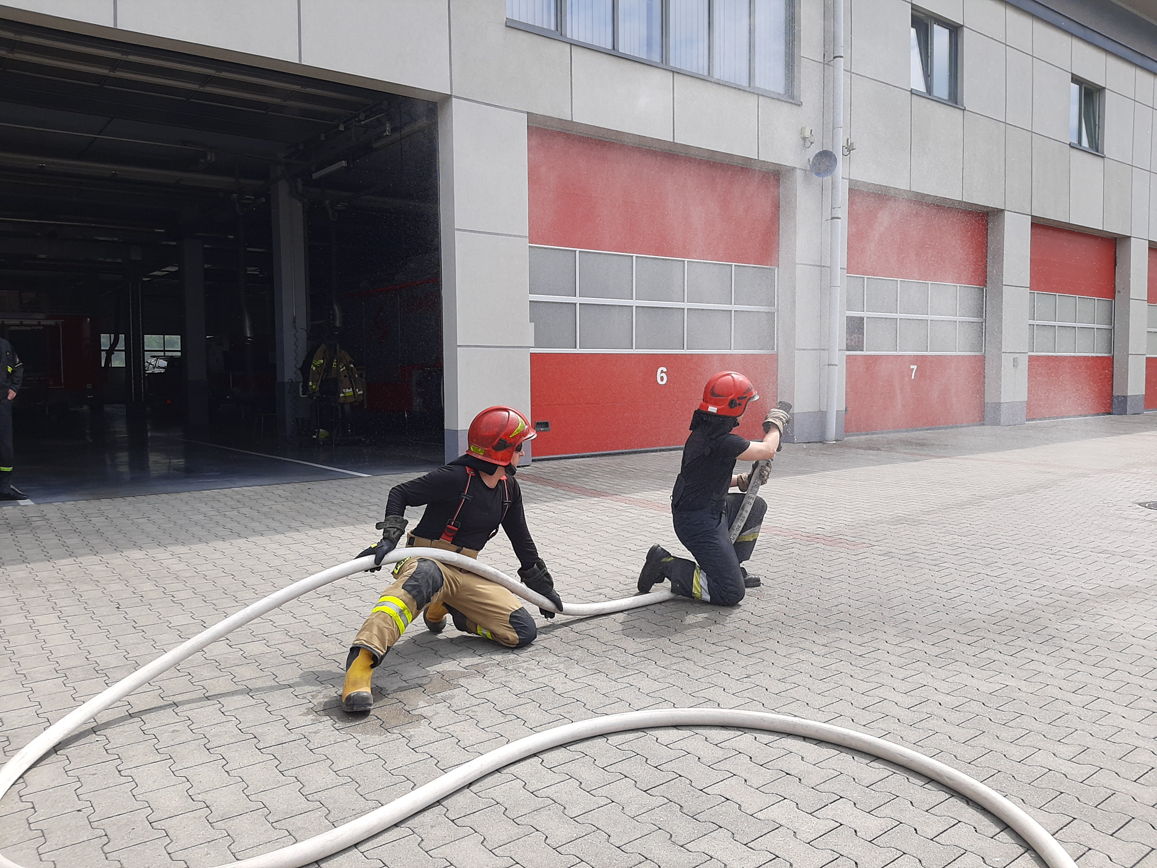 Ćwiczenia w trenażerze rozgorzeniowo-dymowym z technik gaszenia pożarów wewnętrznych