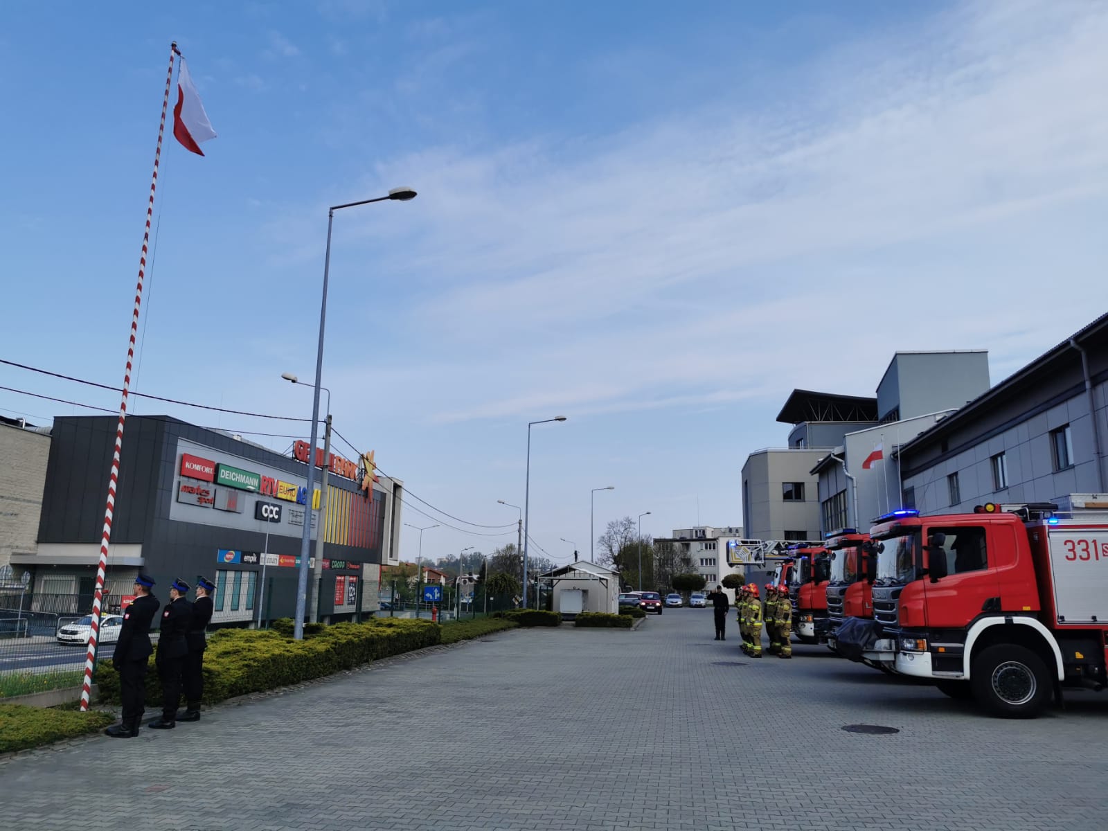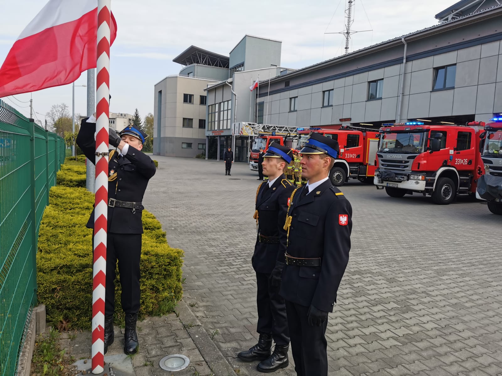 Z okazji Dnia Flagi Rzeczypospolitej Polskiej w Jednostkach Ratowniczo-Gaśniczych Komendy Miejskiej Państwowej Straży Pożarnej w Bielsku-Białej odbyły się uroczyste zmiany służby podczas których podniesiono flagi państwowe.