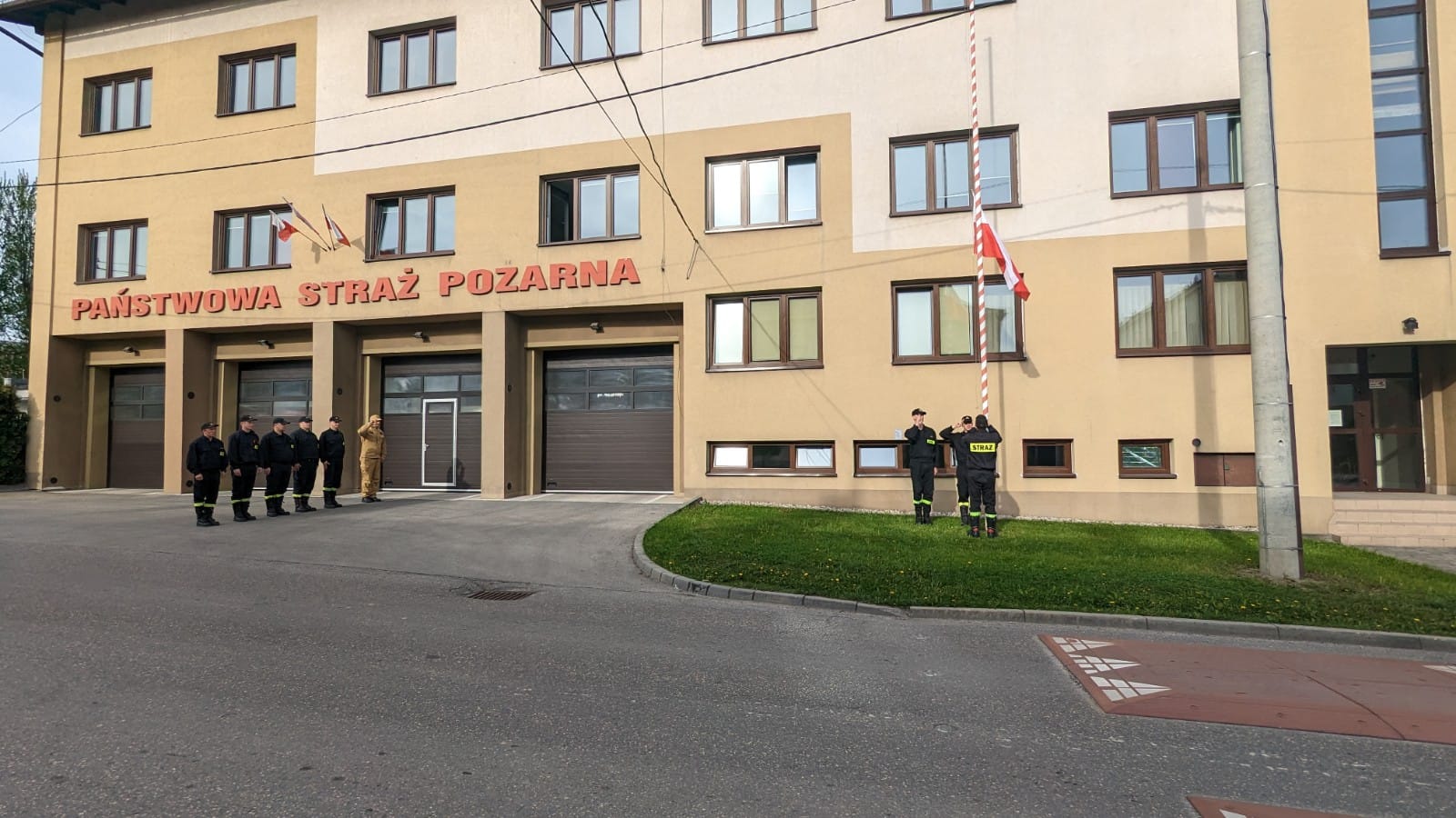 W dniu 2 maja 2023 roku o godzinie 8.00 w Komendzie Miejskiej PSP w Bielsku-Białej, miały miejsce uroczyste zmiany służby, których elementem było podniesienie flagi państwowej na maszt z okazji Dnia Flagi Rzeczypospolitej Polskiej.