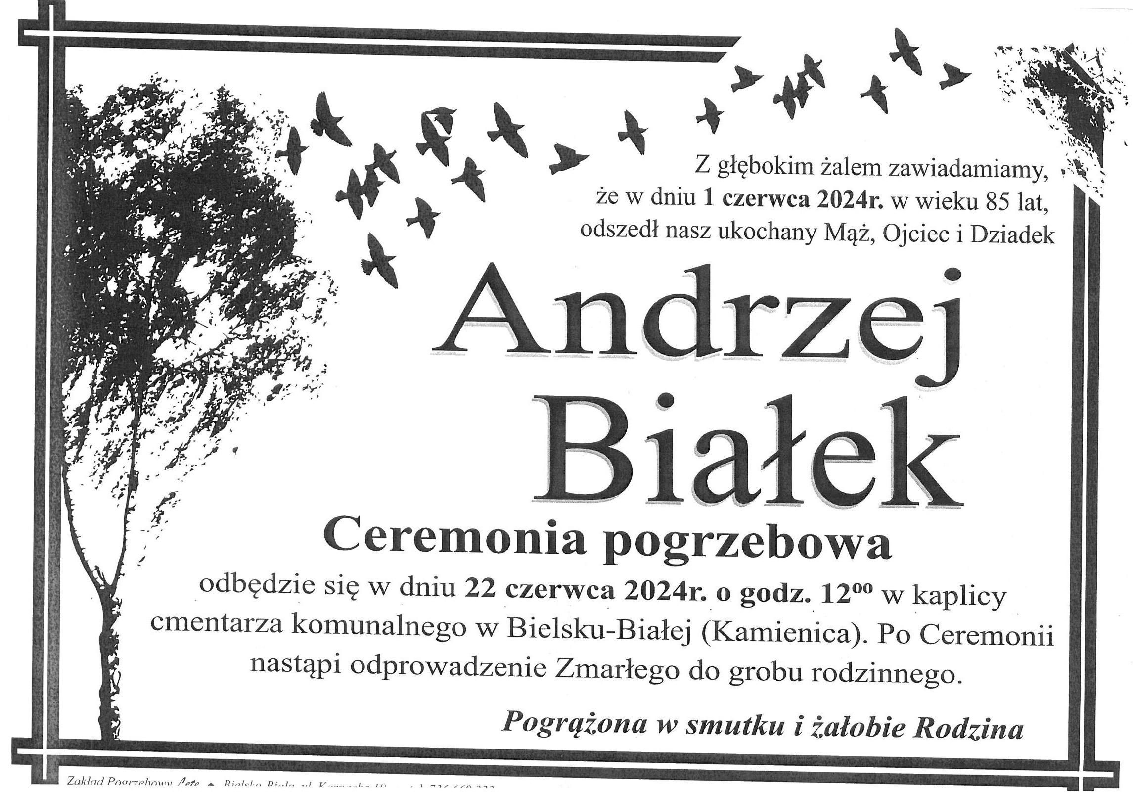 Z ogromnym smutkiem zawiadamiamy, że 1 czerwca 2024r. w wieku 85 lat, na wieczną służbę odszedł bryg. w st. spocz. Andrzej Białek funkcjonariusz Komendy Wojewódzkiej Państwowej Straży Pożarnej w Bielsku-Białej.