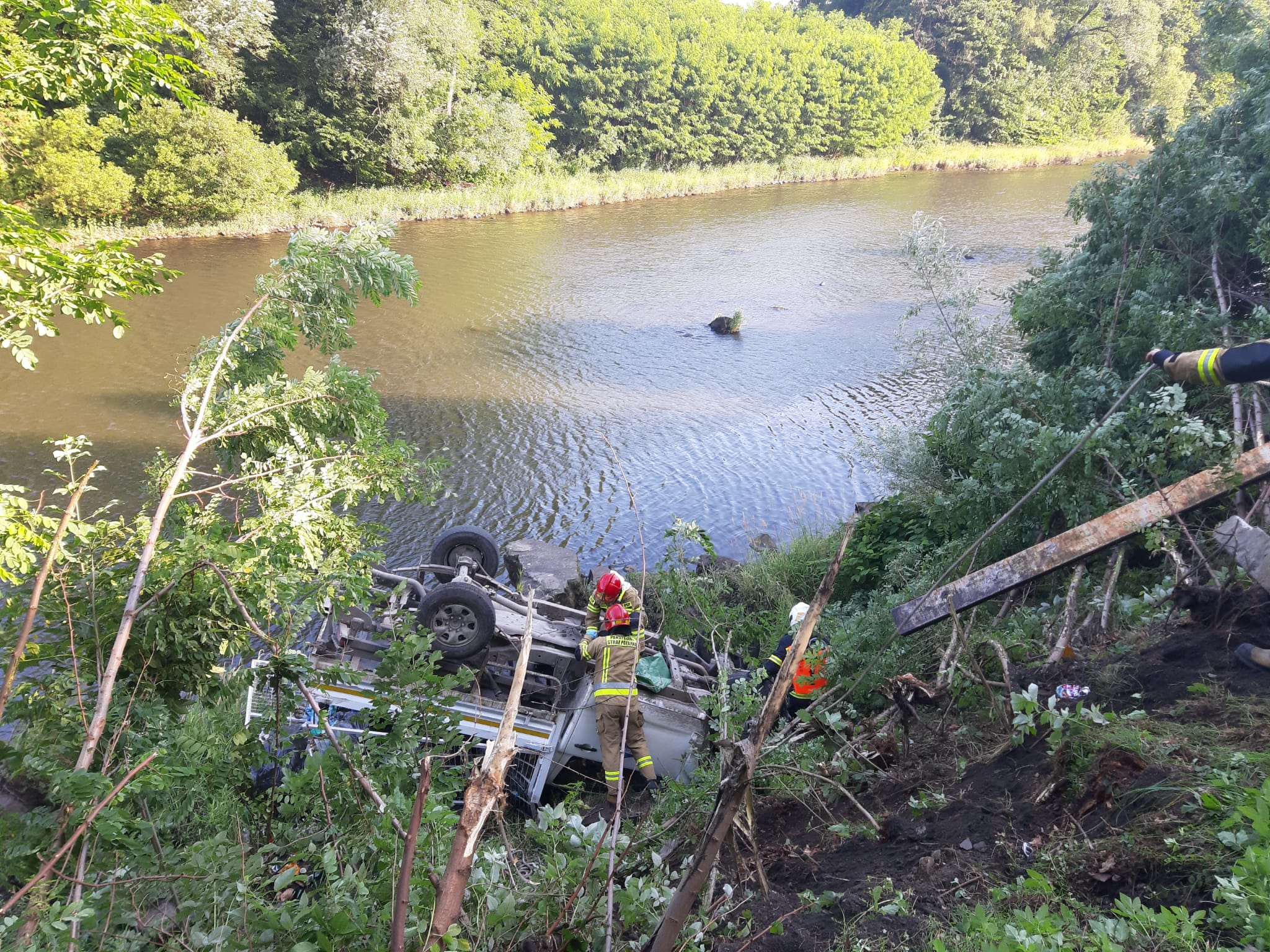 Dzisiaj w godzinach porannych w Porąbce przy ulicy Żywieckiej samochód dostawczy wpadł do rzeki. Najpierw uderzył w barierki energochłonne i wypadł z drogi. W działaniach brało udział pięć zastępów straży pożarnej, pogotowie ratunkowe oraz policja.
