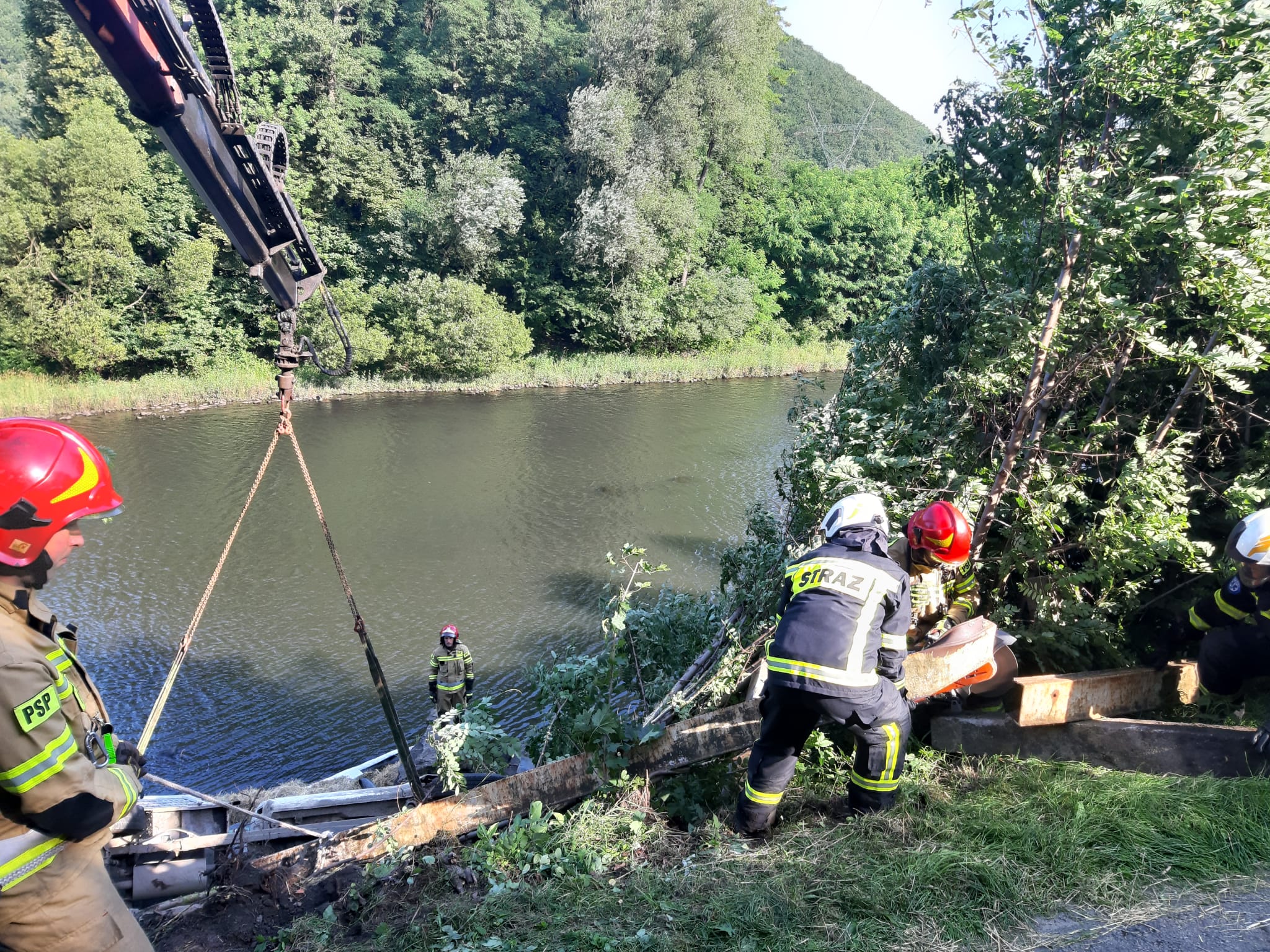 Informacja o zdarzeniu wpłynęła do stanowiska kierowania PSP o godz. 07:02. Po przyjeździe na miejsce zdarzenia, strażacy udali się na rozpoznanie, w wyniku którego ustalono, iż samochód przeznaczony do transportu odpadów wypadł z jezdni i znajduje się na brzegu koryta rzeki. Osoby podróżujące pojazdem biorącym udział w kolizji (mężczyzna i kobieta) opuściły pojazd o własnych siłach przed przyjazdem służb. Następnie zostały przebadane przez zespół ratownictwa medycznego i przetransportowane do szpitala. Działania straży pożarnej polegały na: zabezpieczeniu miejsca zdarzenia, zabezpieczeniu cieku wodnego przed ewentualnym wyciekiem substancji ropopochodnej przy pomocy rękawa sorpcyjnego oraz słomy, usunięciu uszkodzonej bariery, usunięciu plamy substancji ropopochodnej z jezdni oraz jej uprzątnięciu. Na czas działań ruch drogowy na ul. Żywieckiej został wstrzymany w obu kierunkach. Działania zakończono o godz. 09:46.