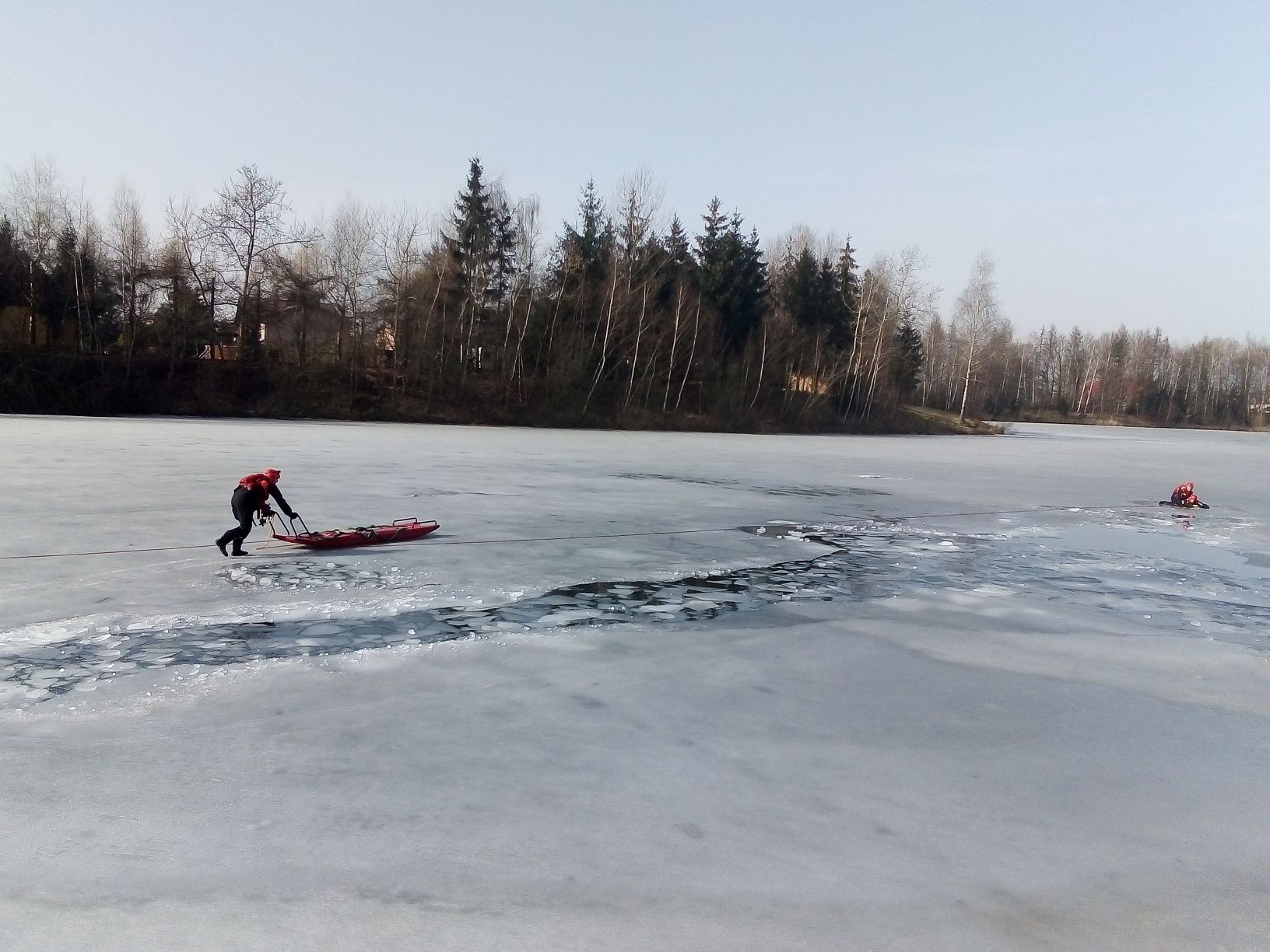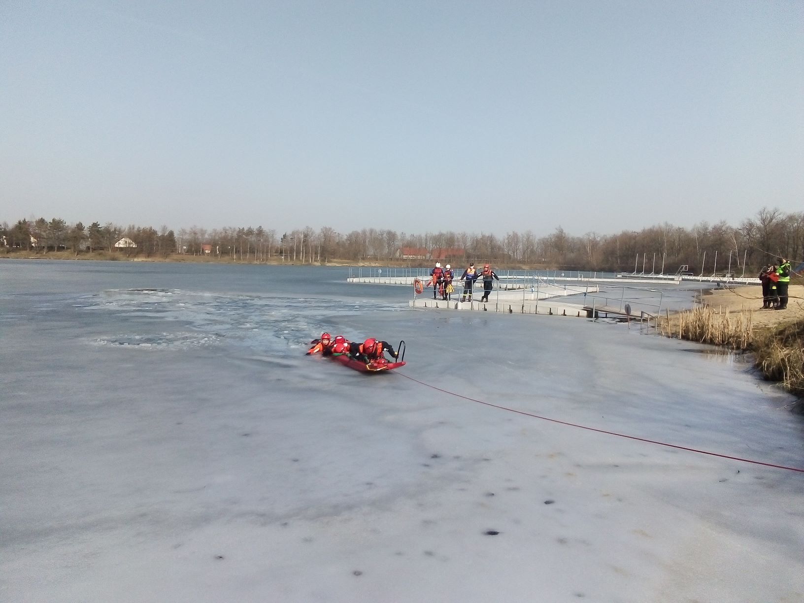 Powiatowe ćwiczenia z ratownictwa lodowego. Bezpieczeństwo na zamarzniętych akwenach