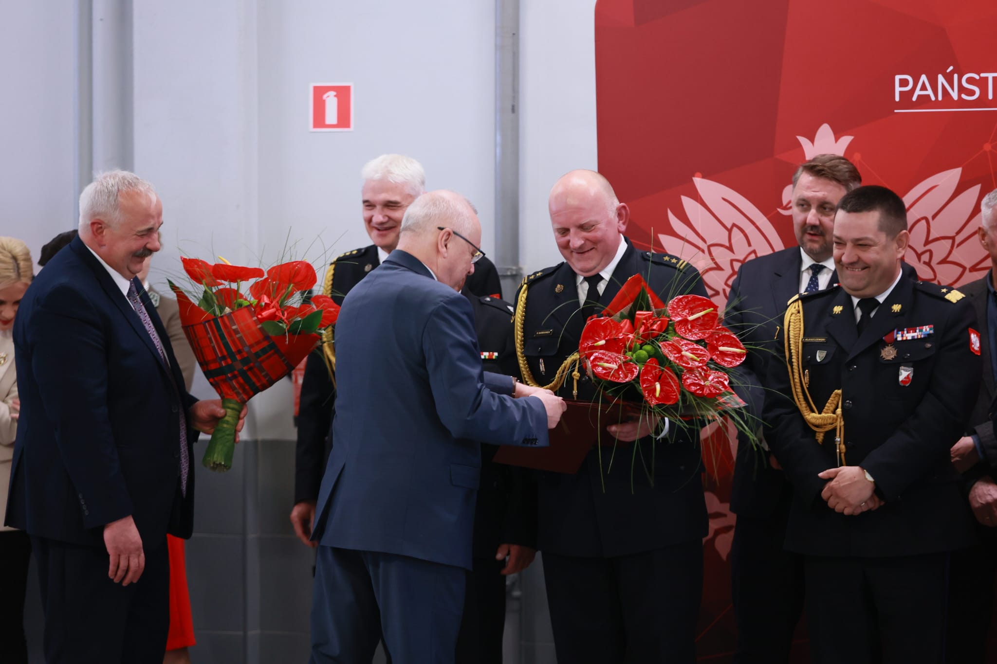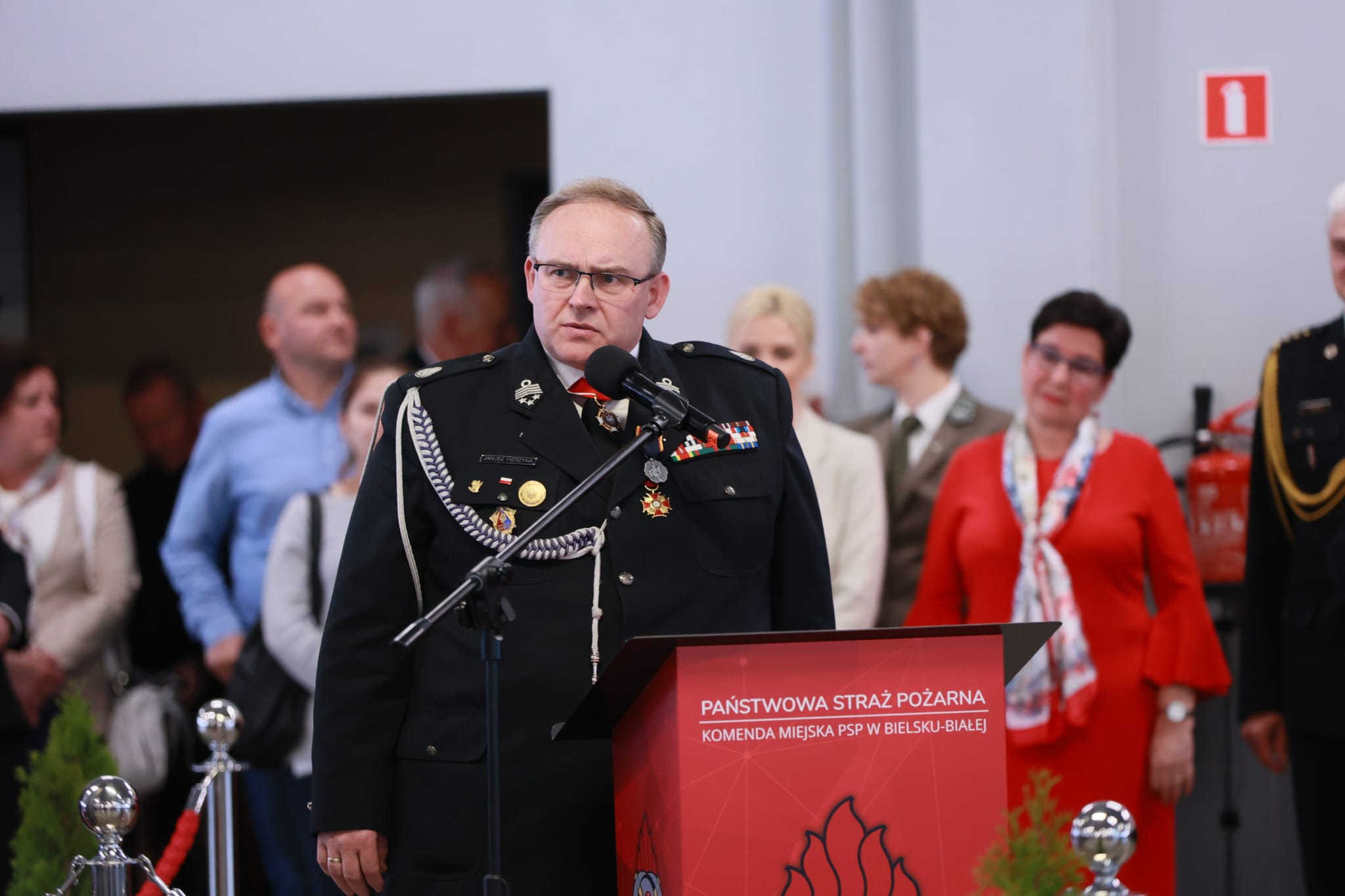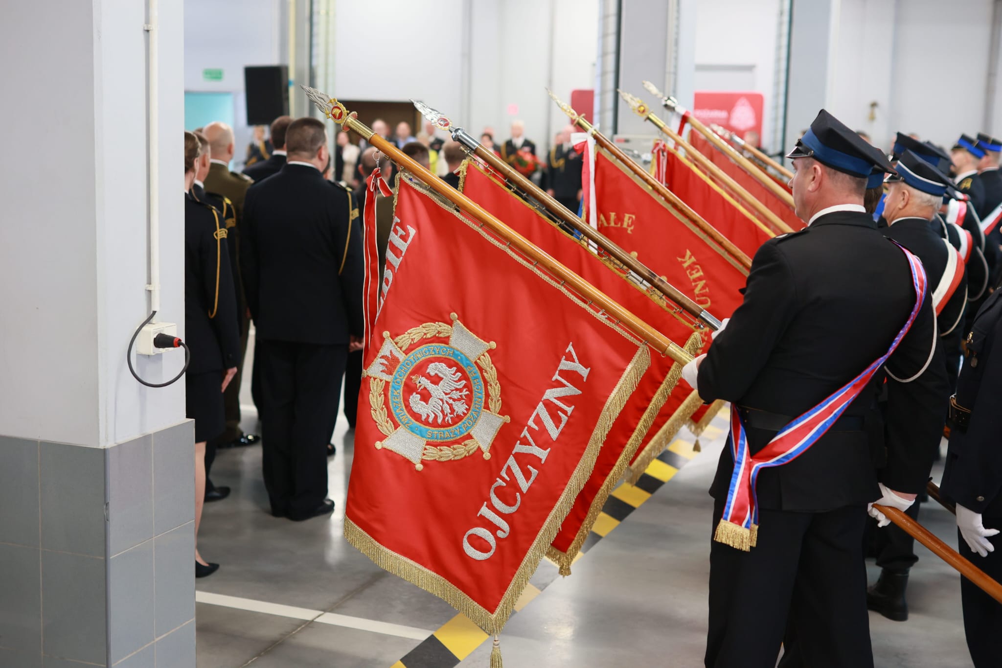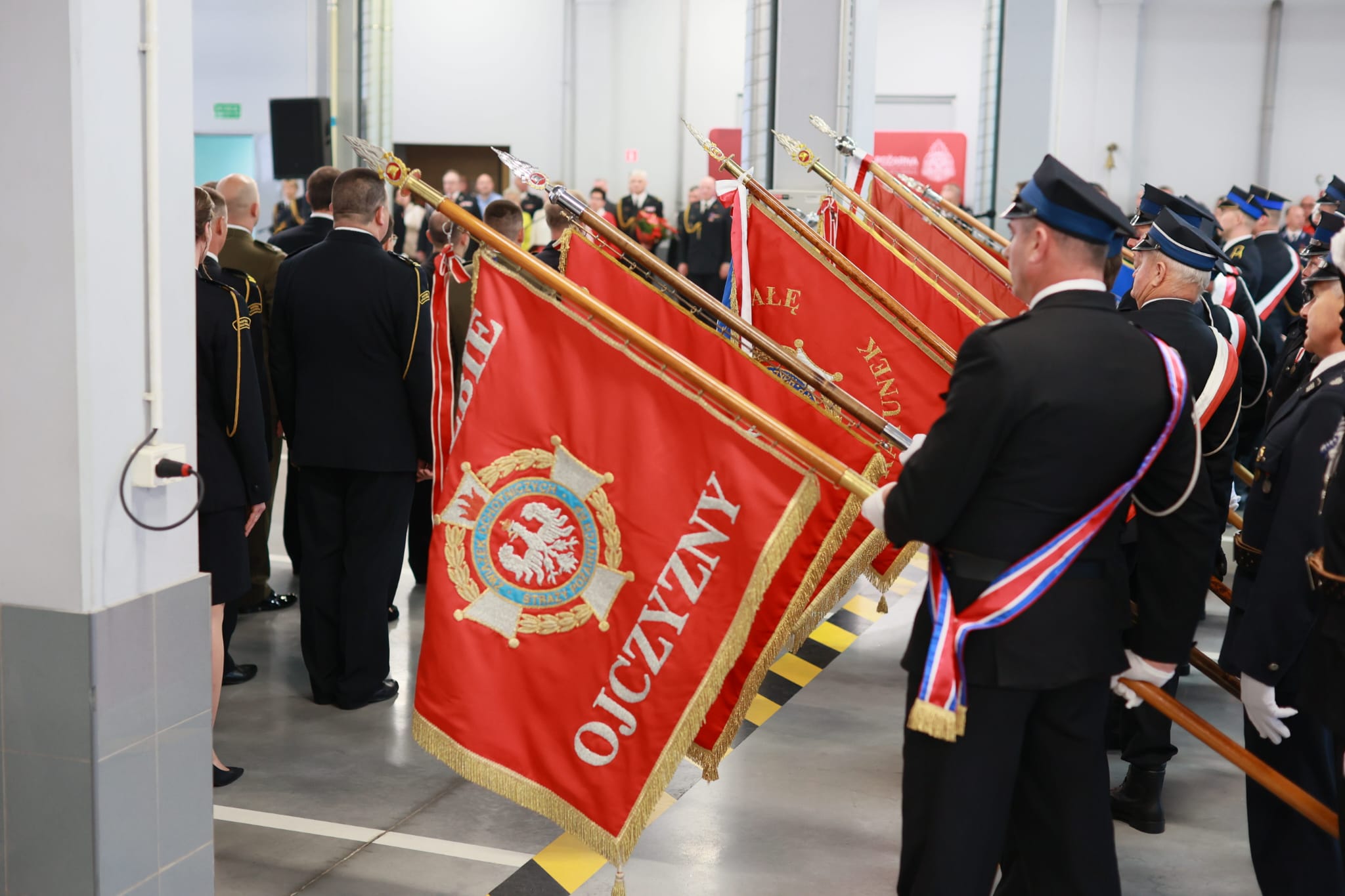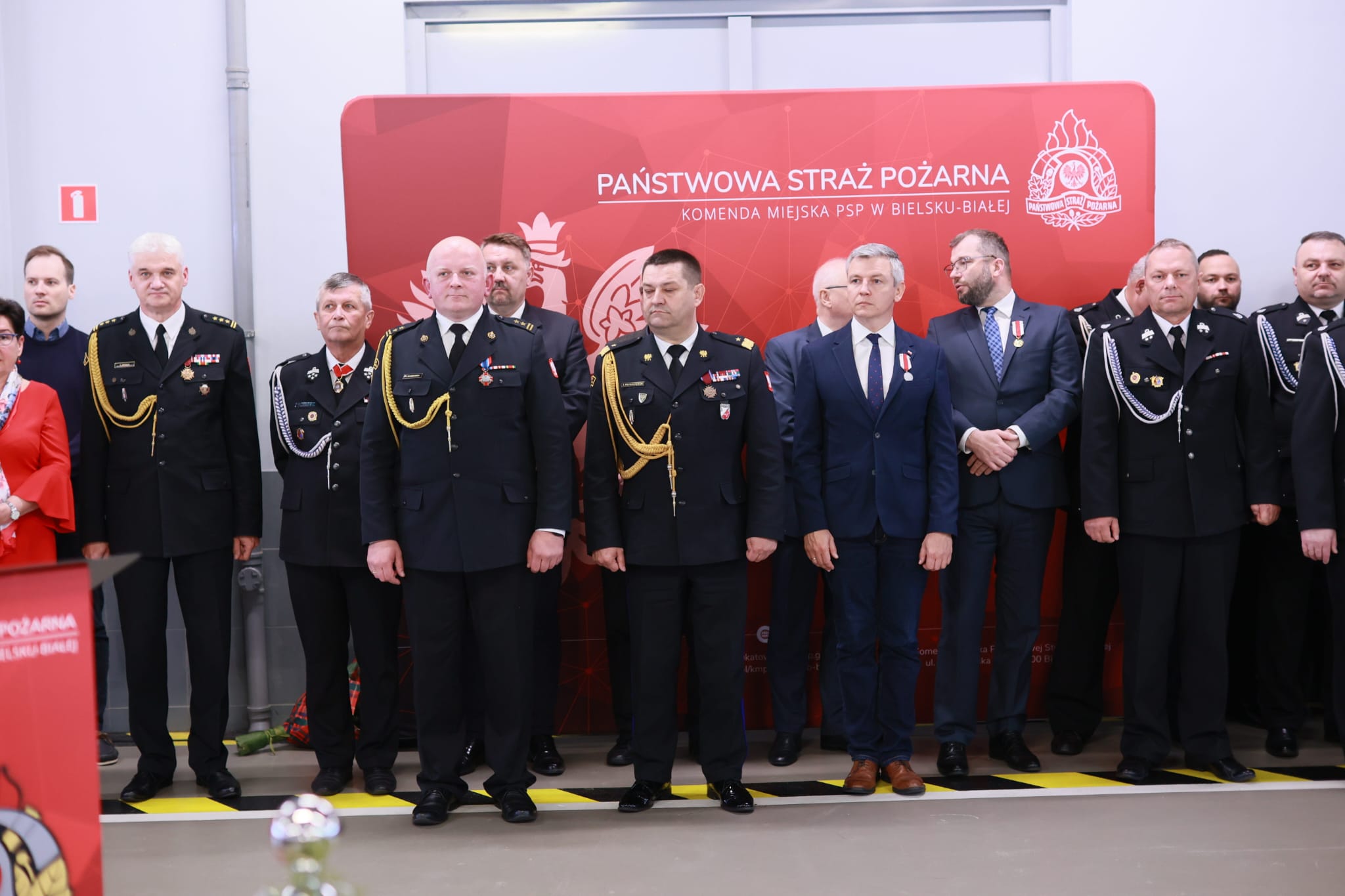 W uroczystości wzięli udział zaproszeni goście: parlamentarzyści, przedstawiciele władz samorządowych, służb i instytucji współpracujących z Państwową Strażą Pożarną, prezesi Zarządów Oddziałów Powiatowych ZOSP RP, funkcjonariusze oraz pracownicy cywilni PSP.