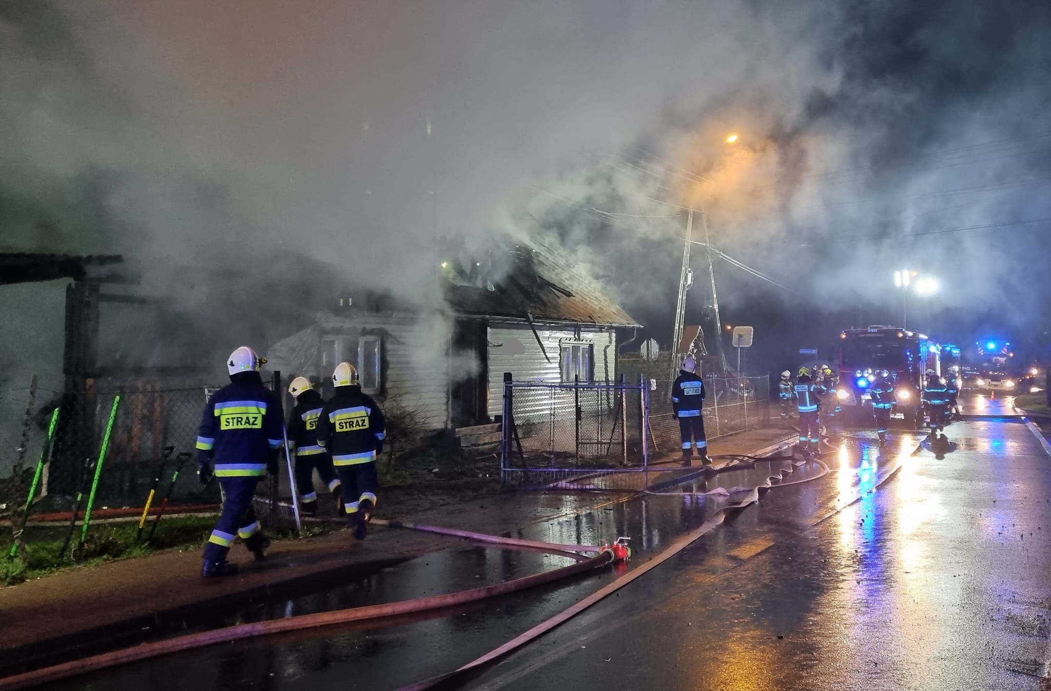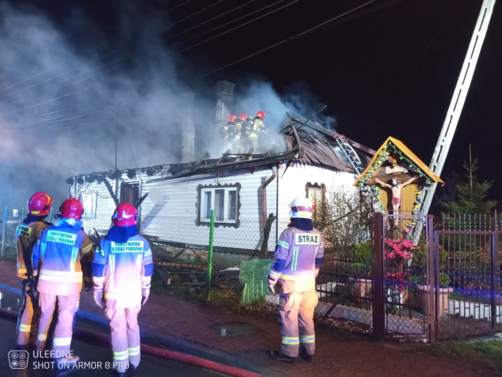 Dyżurny stanowiska kierowania PSP odebrał zgłoszenie o pożarze o godz. 3:31. Kiedy jednostki straży pożarnej przybyły na miejsce zdarzenia, zastano rozwinięty pożar budynku mieszkalnego. Ogień przedostał się przez eternitowe poszycie dachowe i wyraźnie uszkodził krokwie. Dodatkowo pożar zajął przybudówkę z wiatą na drewno przyległą do budynku. Konstrukcja ta uległa całkowitemu spaleniu. Przed przybyciem strażaków, czterech mieszkańców, w tym jedno dziecko opuściło budynek o własnych siłach i nie wymagało pomocy medycznej.