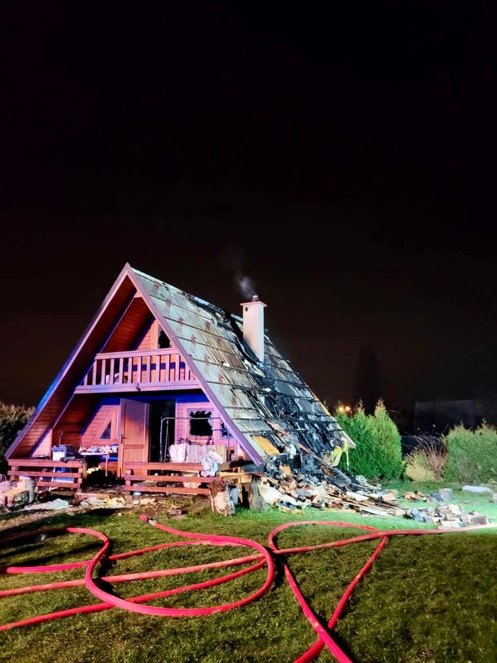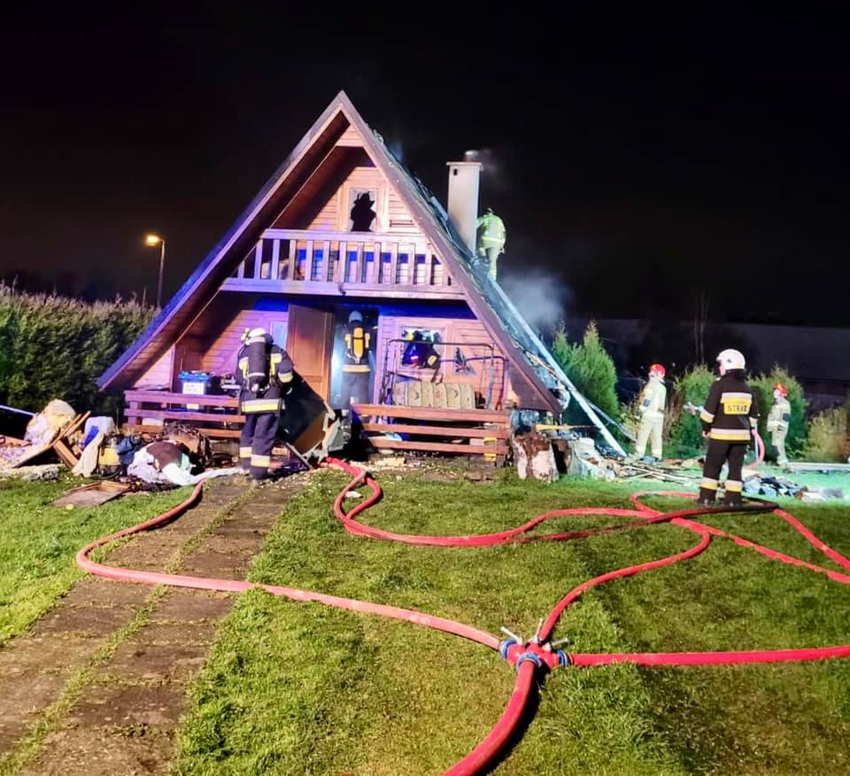 Kiedy jednostki straży pożarnej przybyły na miejsce zdarzenia, w ogniu stał drewniany domek letniskowy pokryty blachą. Od właściciela uzyskano informację, że w środku , nie ma osób poszkodowanych. Działania strażaków polegały na podaniu dwóch prądów wody, jeden do wnętrza budynku, a drugi z zewnątrz. Żeby ratownicy mogli dotrzeć do zarzewi ognia, konieczne było zdjęcie znacznej części poszycia dachowego. Po ugaszeniu pożaru przystąpiono do niezbędnych prac rozbiórkowych. Tlące się elementy sukcesywnie przelewano wodą i wynoszono na zewnątrz obiektu. Wnętrze domku oddymiono i przewietrzono. Na miejscu pożaru przez godzinę pozostał zastęp OSP celem dozorowania.