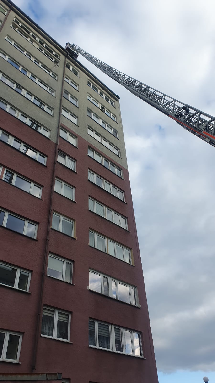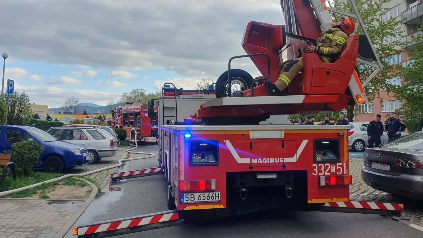 O godzinie 17:53 dyżurny stanowiska kierowania odebrał zgłoszenie o pożarze w budynku dzisięciokondygnacyjnym. Podczas dojazdu z oddali było widać kłęby czarnego dymu na dachu wieżowca. Po dojeździe zastępów miejsce zdarzenia zabezpieczono, a obecna na miejscu policja prowadziła ewakuację danej klatki.
