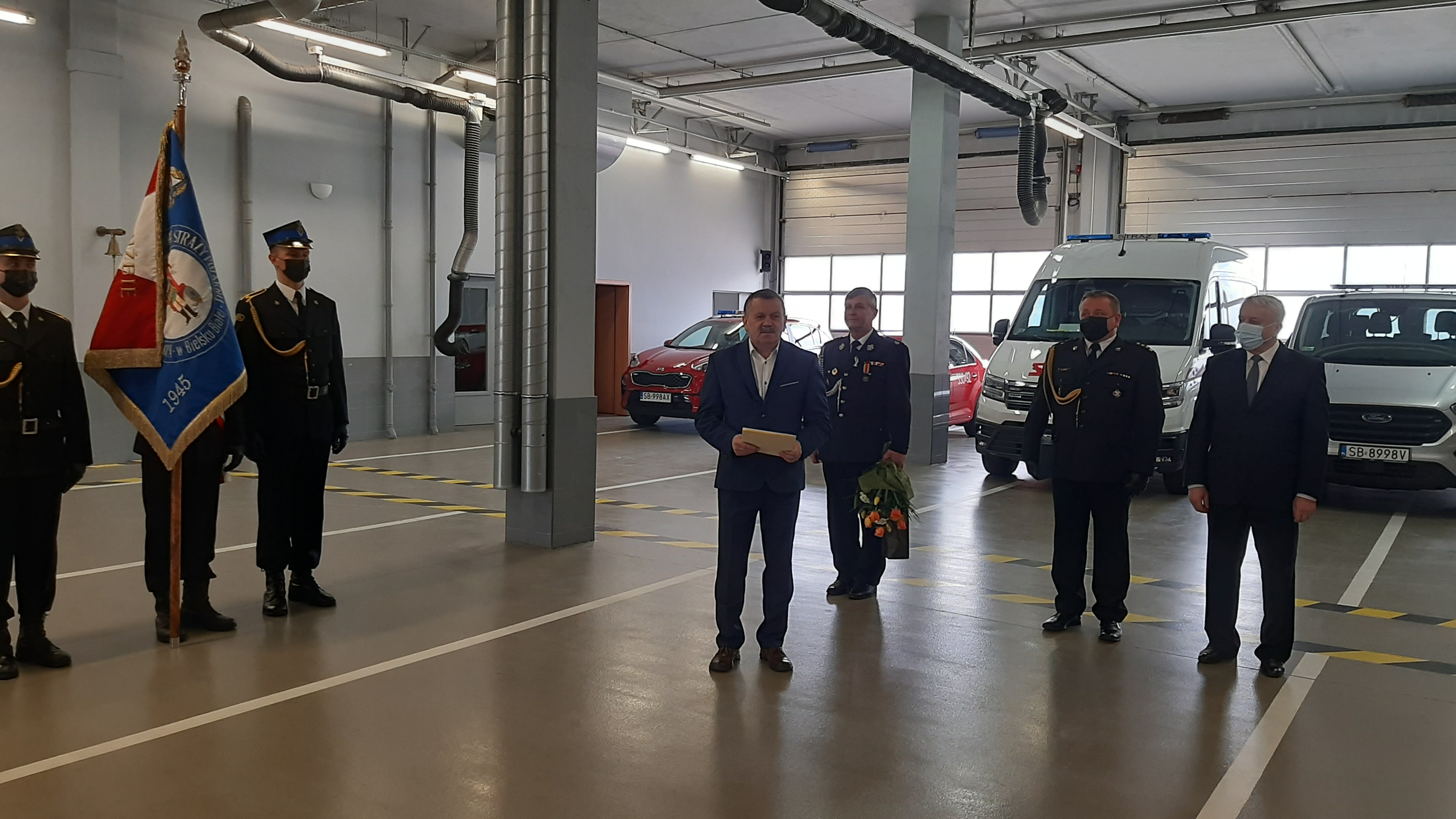 Podczas uroczystości komendant miejski PSP w Bielsku-Białej st. bryg. Zbigniew Mizera w imieniu własnym oraz wszystkich współpracowników podziękował za całokształt służby na rzecz ochrony przeciwpożarowej oraz zasługi dla bielskiego pożarnictwa.