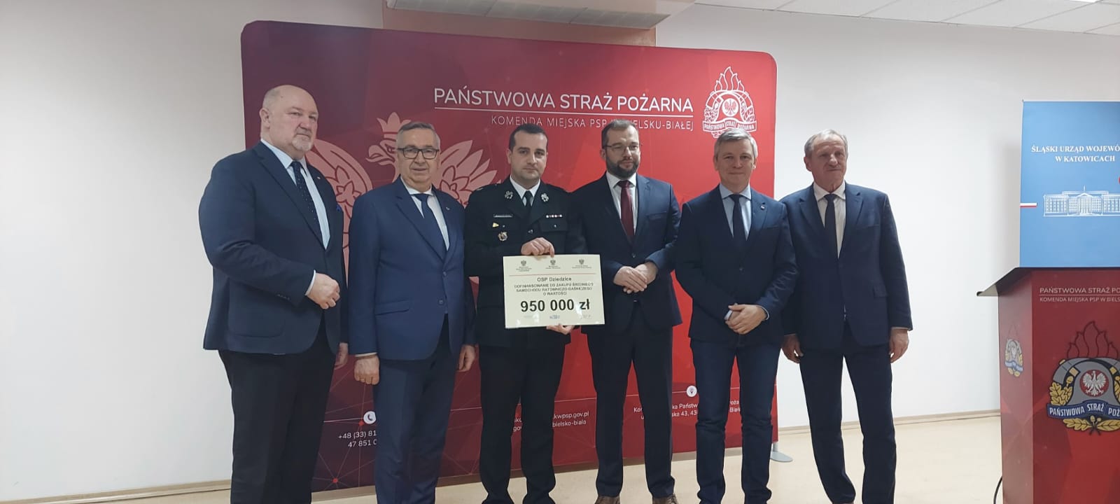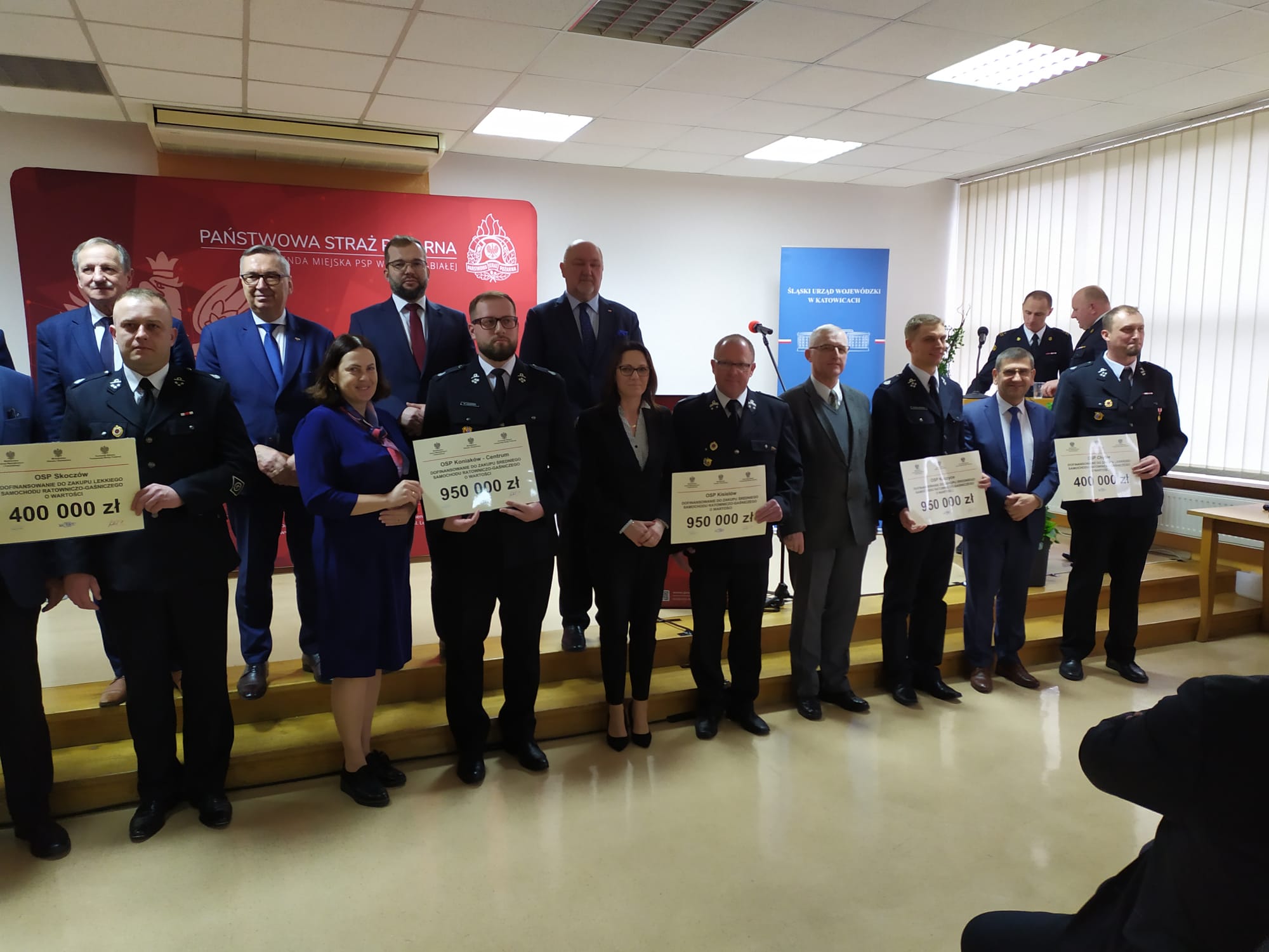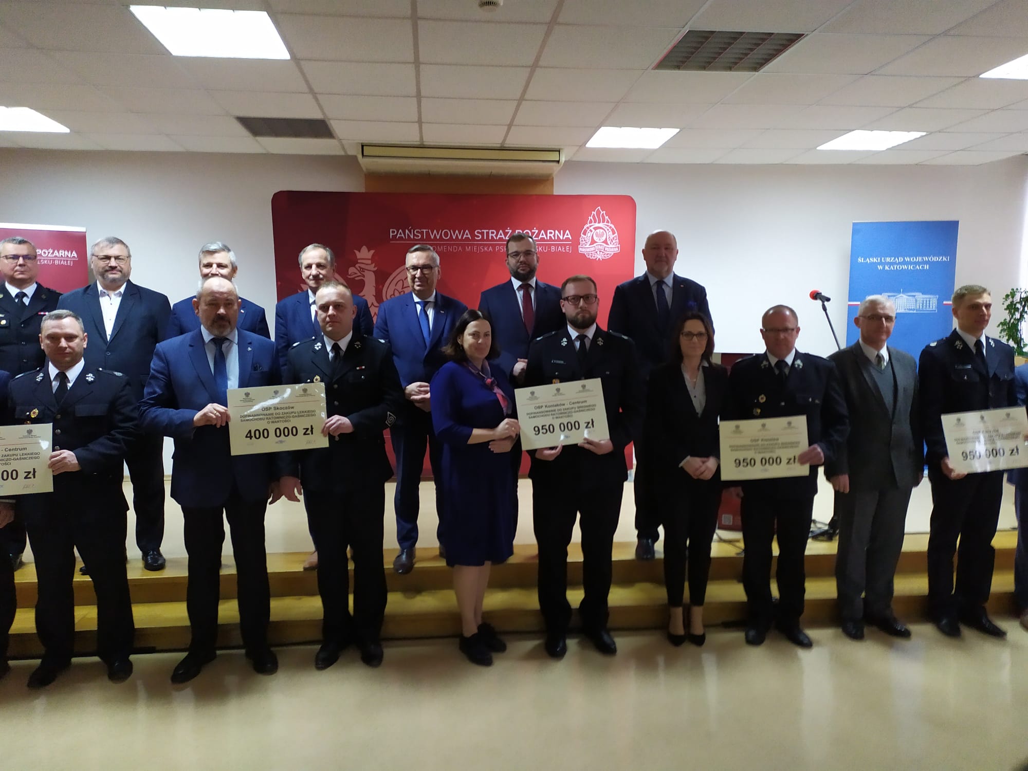 Następnie odbyło się uroczyste przekazanie promes na zakup nowych pojazdów dla OSP z terenu m. Bielsko-Biała, powiatu bielskiego, cieszyńskiego, pszczyńskiego i żywieckiego. Promesy trafiły do: