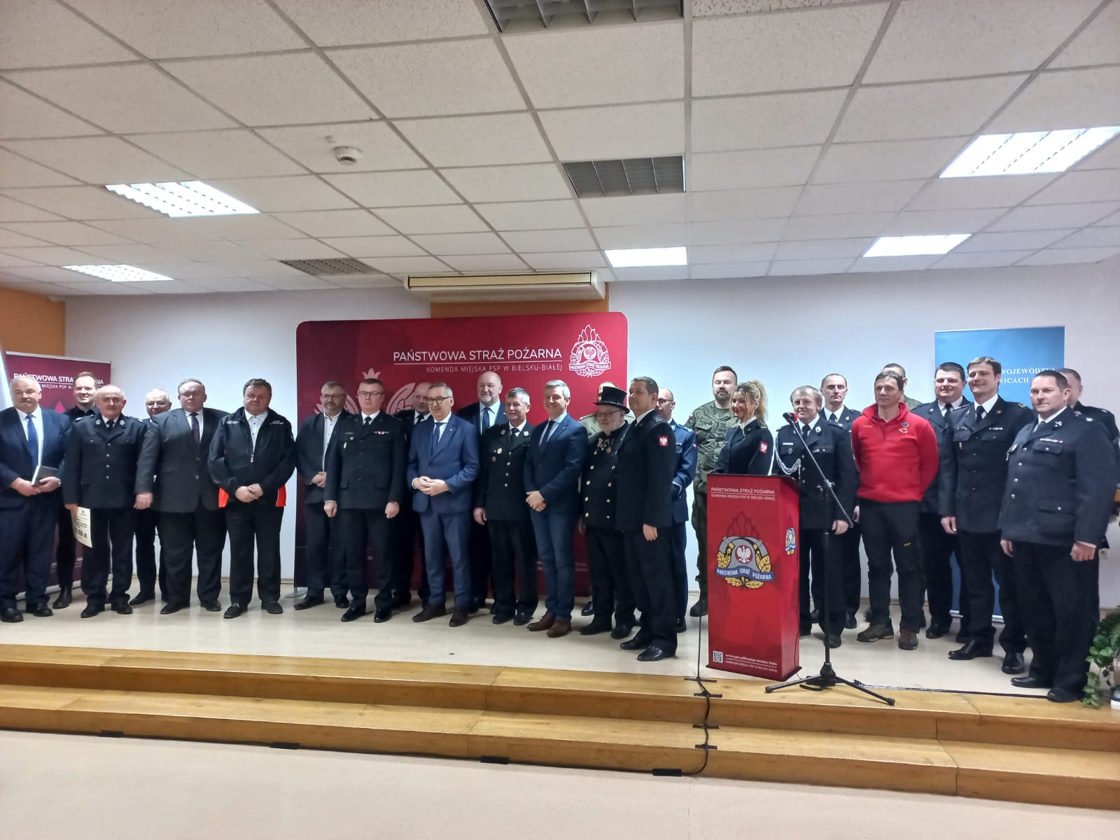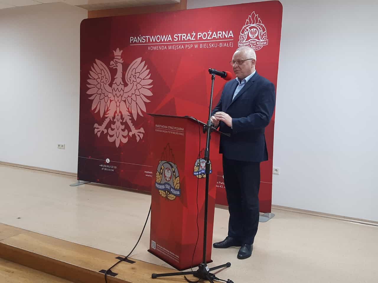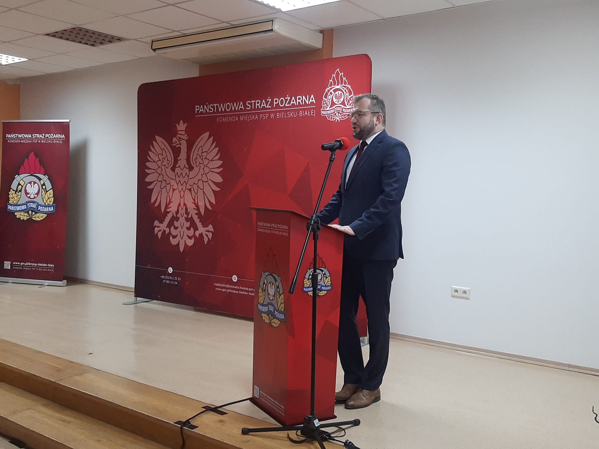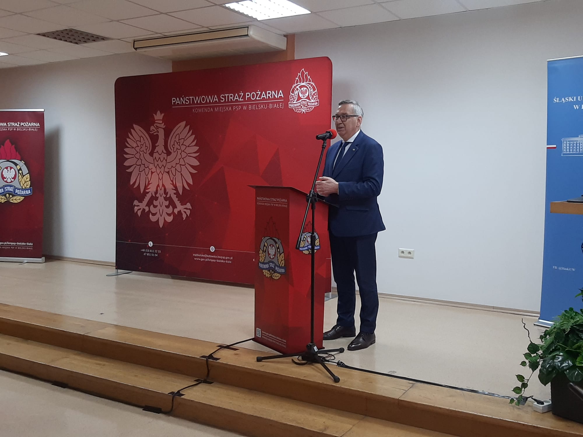 Podczas spotkania głos zabrali m.in. Minister Funduszy i Polityki Regionalnej Grzegorz Puda, Wiceminister Rodziny i Polityki Społecznej Stanisław Szwed, Poseł na Sejm RP Przemysław Drabek, Poseł na Sejm RP Grzegorz Gaża, Wicewojewoda Śląski Jan Chrząszcz, Starosta Bielski Andrzej Płonka, Wiceprezes Zarządu Oddziału Wojewódzkiego Związku OSP RP w Katowicach Janusz Pierzyna, Prezes Zarządu Oddziału Powiatowego OSP w Bielsku-Białej dh Stanisław Nycz, Zastępca Śląskiego Komendanta Wojewódzkiego PSP st. bryg. Mirosław Synowiec.