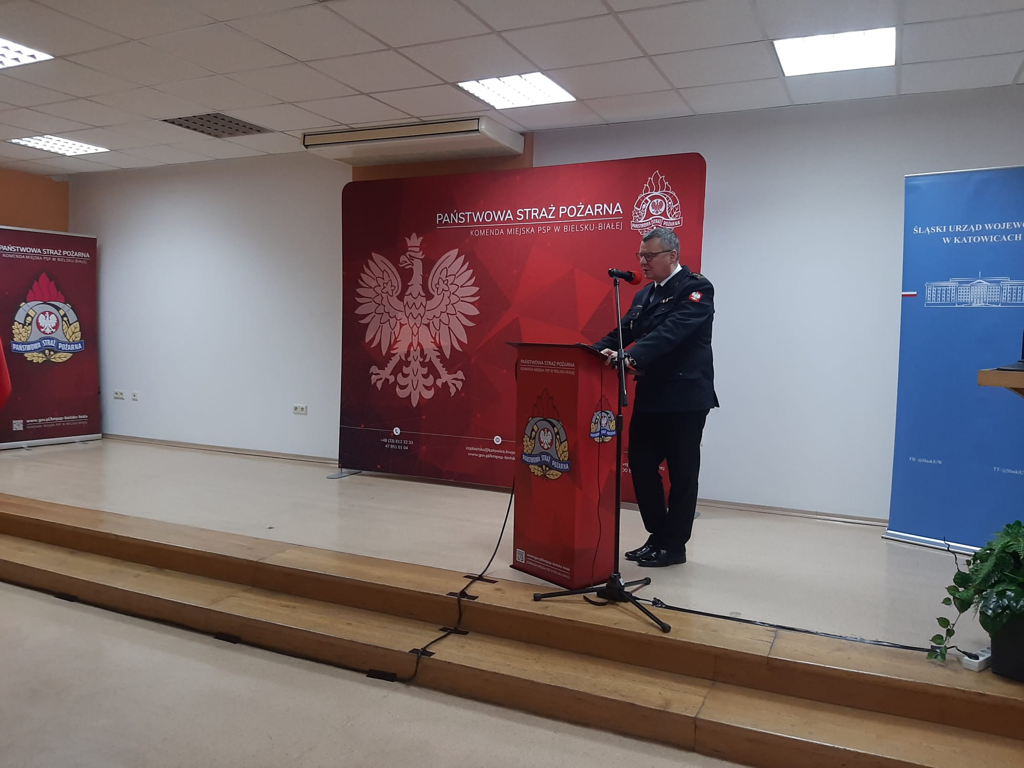 W kolejnym punkcie spotkania Komendant Miejski PSP w Bielsku-Białej przedstawił informacje z działalności komendy za rok 2022 oraz plany na 2023.