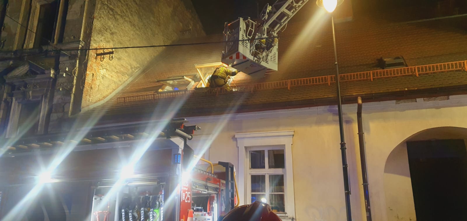 (2 osoby). Ze względu na zadymioną klatkę schodową, lokatorów z mieszkań na poddaszu ewakuowano za pomocą drabiny mechanicznej przez okno dachowe (łącznie 5 osób, w tym dwójka dzieci). Wszystkie ewakuowane osoby zostały przebadane przez Bielskie Pogotowie Ratunkowe - nie wymagały hospitalizacji. Dalsze czynności polegały na wyniesieniu na zewnątrz spalonego wyposażenia. Wraz z prowadzonymi pracami uruchomiona została wentylacja mechaniczna w celu oddymienia ciągów komunikacyjnych.