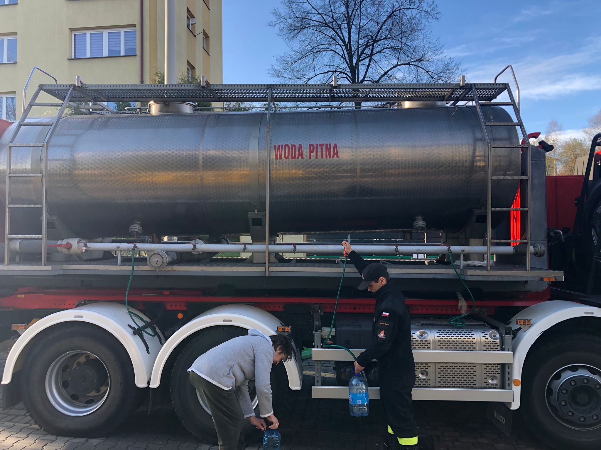 Ponadto strażacy z jednostek ochotniczych straży pożarnych z terenu Bielska-Białej dostarczają od wczoraj wodę osobom, które nie były w stanie same podejść do beczkowozów. W tym celu jeździli ulicami miasta i przez megafon przekazywali komunikat o możliwości dostarczenia wody bezpośrednio do mieszkań. Rozdawano wodę w 5 i 1,5 litrowych butelkach.