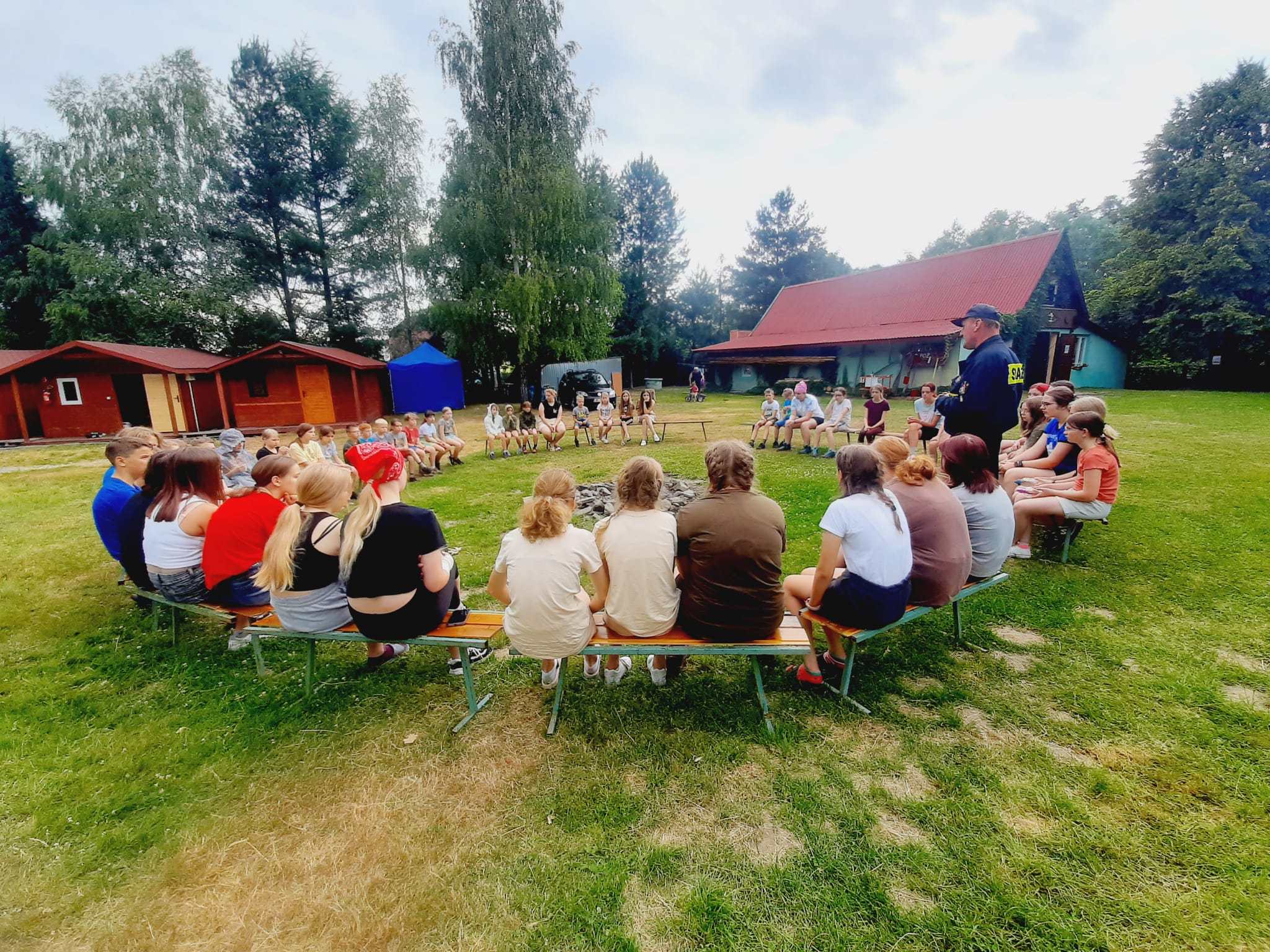 Przez cały okres wakacji strażacy i policjanci kontrolują bezpieczeństwo na obozach harcerskich. Przy okazji informują na jakie zagrożenia mogą natknąć się uczestnicy obozu w lesie, jak zachować się w sytuacji kryzysowej oraz jakim sprzętem dysponuje straż pożarna.